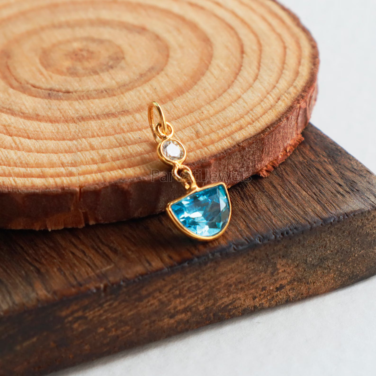Elegant Blue Topaz and Moissanite Charm, 18k Solid Gold Charm, Blue Topaz Charm, Gold Charm, Moissanite Charm, Handmade Gold Charm