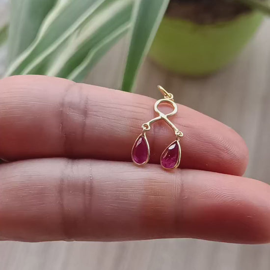2 Stone Hanging Ruby Charm, 18k Solid Gold Charm, Natural Ruby Pendant, Charm Necklace, Natural Ruby Gold Charm, July Birthstone, SOLID18K