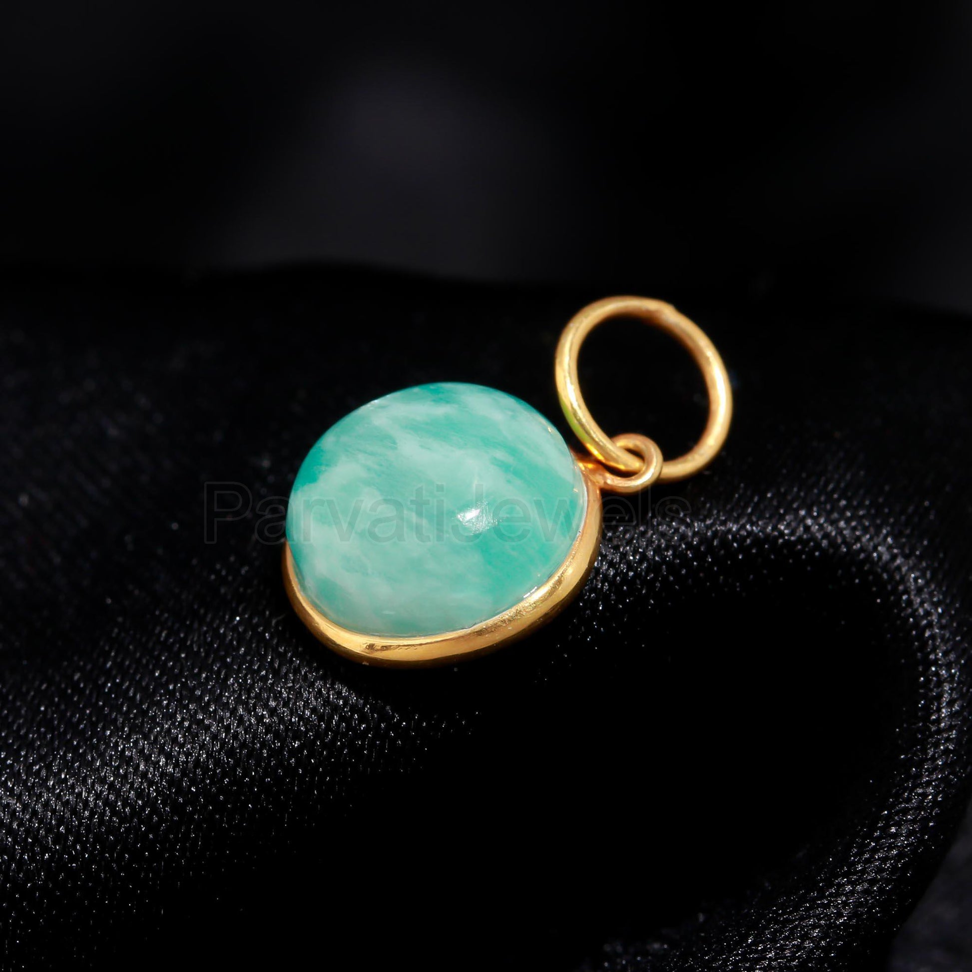 Natural Blue Larimar Round Gemstone Charm, Solid 18k Gold Charm, Gold Charm Pendant, Minimalist Gold Charm, Handmade Gold Charm, Gift For Her, Gift For Mom, Gift For Sister, Gift For Girlfriend