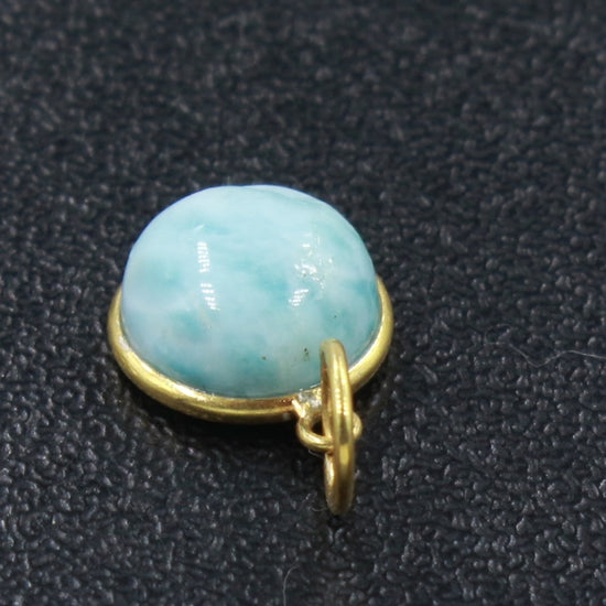 Natural Blue Larimar Round Gemstone Charm, Solid 18k Gold Charm, Charm Pendant, Minimalist Gold Charm, Handmade Gold Charm, Gift For Mom