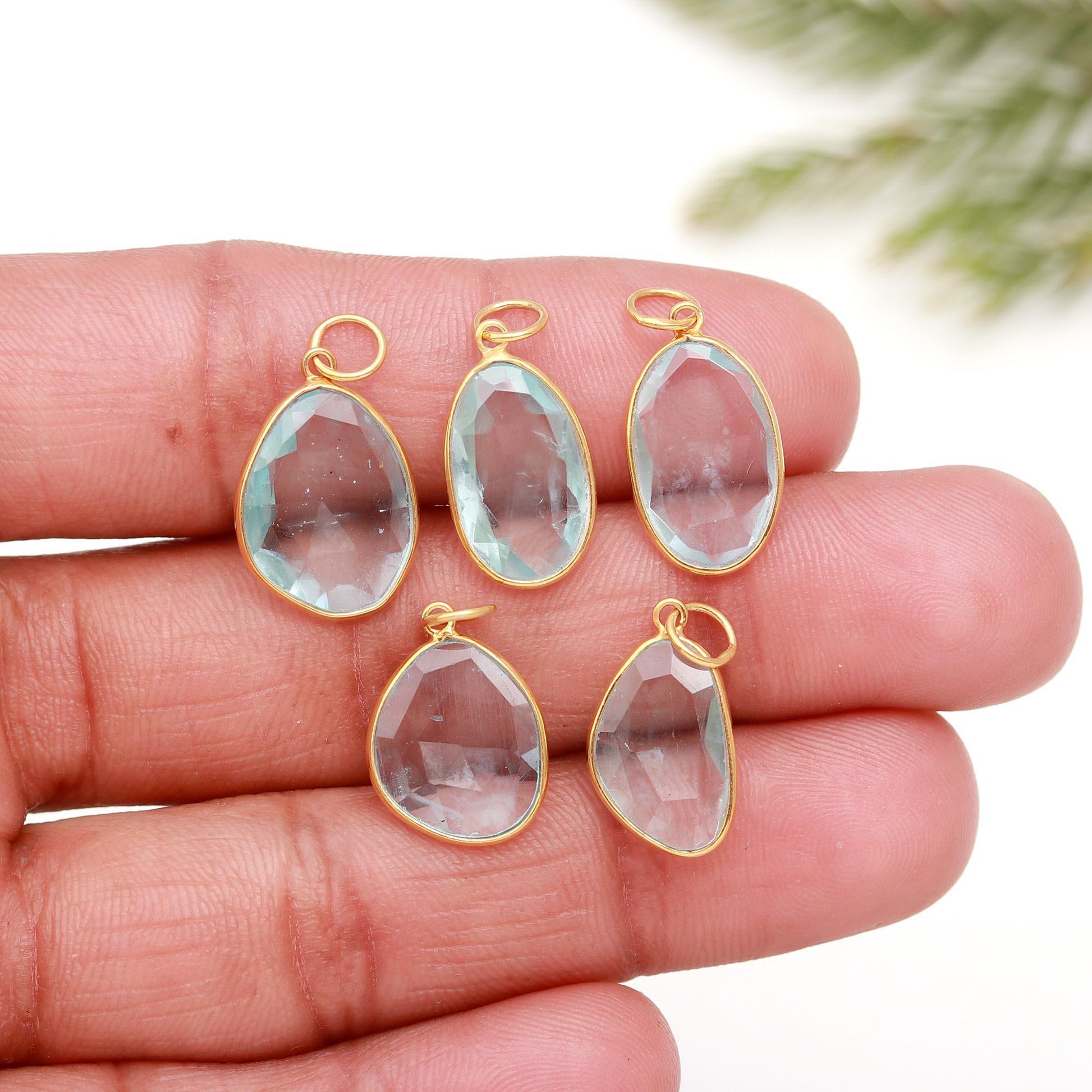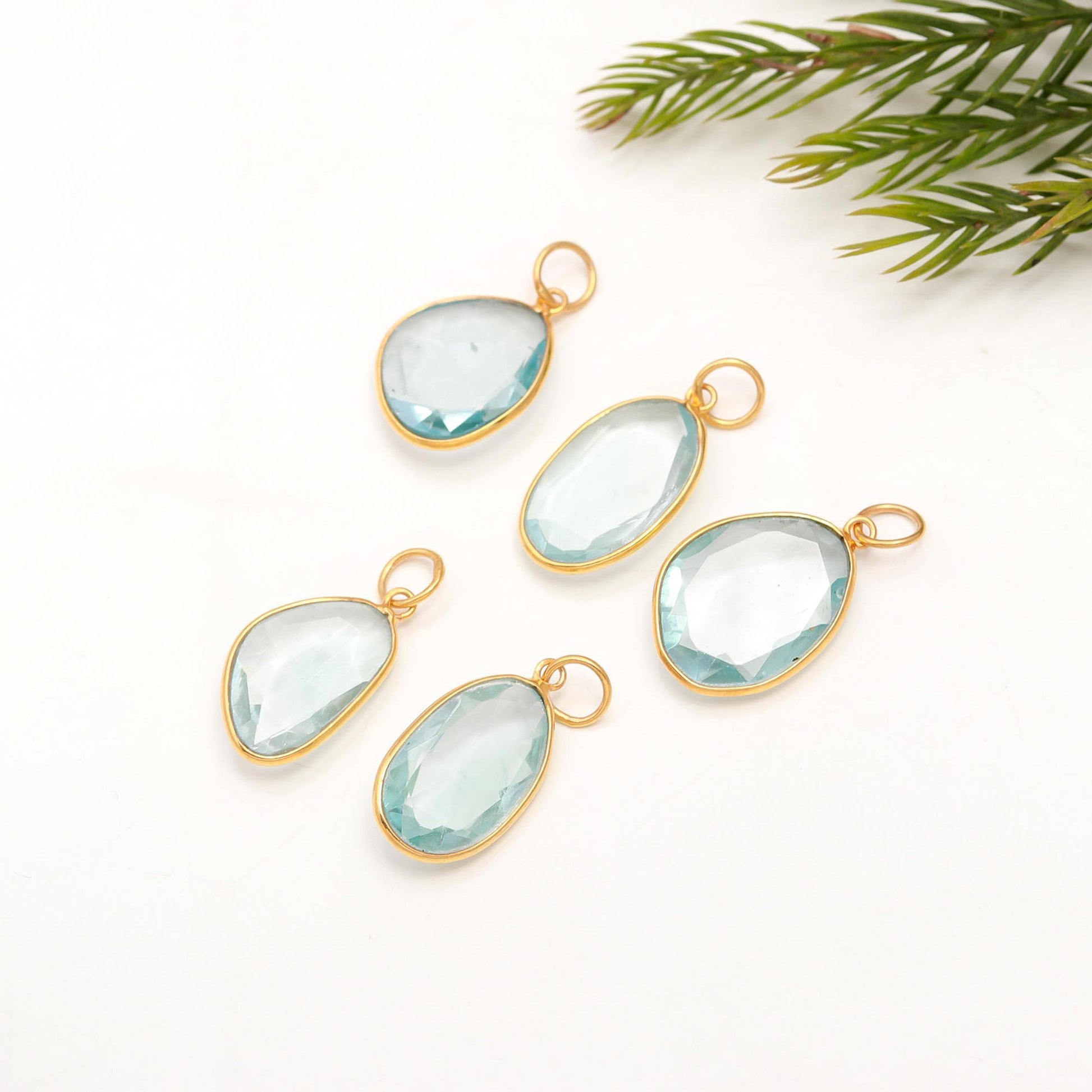 AA Natural Blue Topaz Charm, Solid 18k Gold Charm, Handmade Gold Charm, Fancy Shape Topaz Rose Cut Charm, Birthstone Charm, Gold Charm, Gold Charm Pendant, Minimalist Gold Pendant, Gift For Mom Charm, Gift For Sister Charm, Gift for Her Charm Pendant,