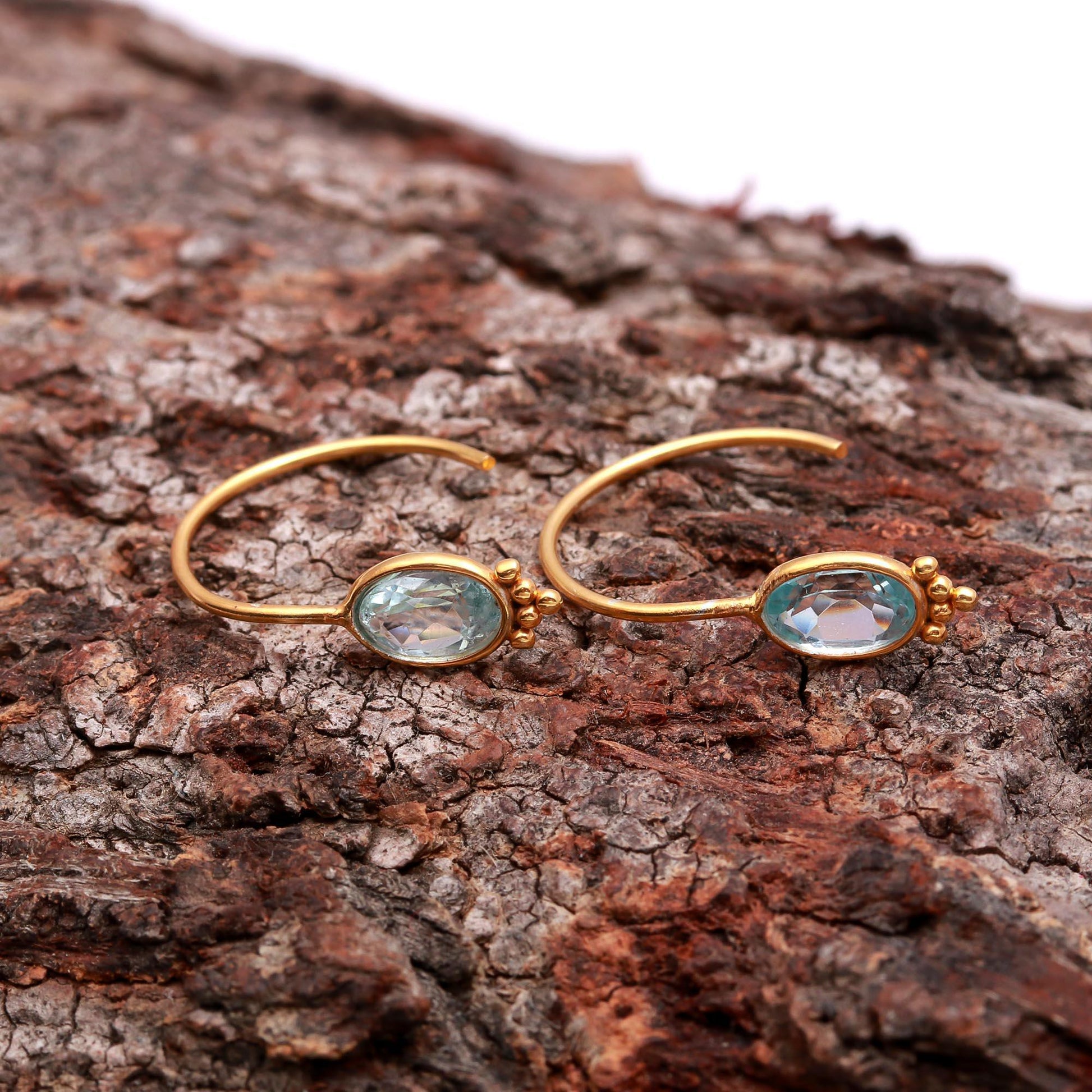 AA Natural Blue Topaz Hoop Earring, Solid 18k Gold Earrings, Blue Topaz Earring, Birthstone Earring, Partywear Hoop Earring, Gold Earrings, Gift for her