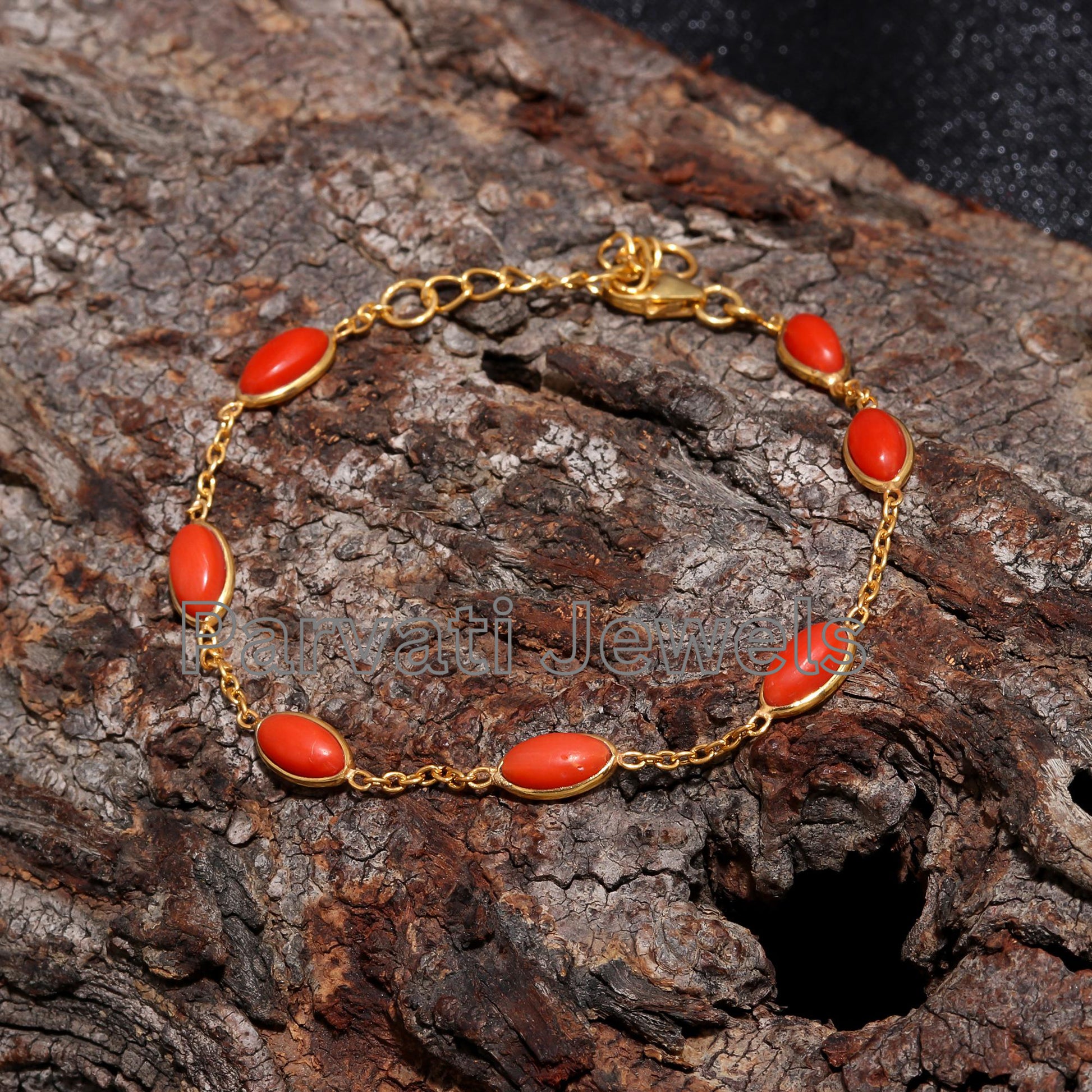 AA Natural Italian Coral Bracelet, 18k Solid Gold Bracelet, Handmade Gold Bracelet, Gold Bracelet, Gift for her, Coral Bracelet, Solid 18k