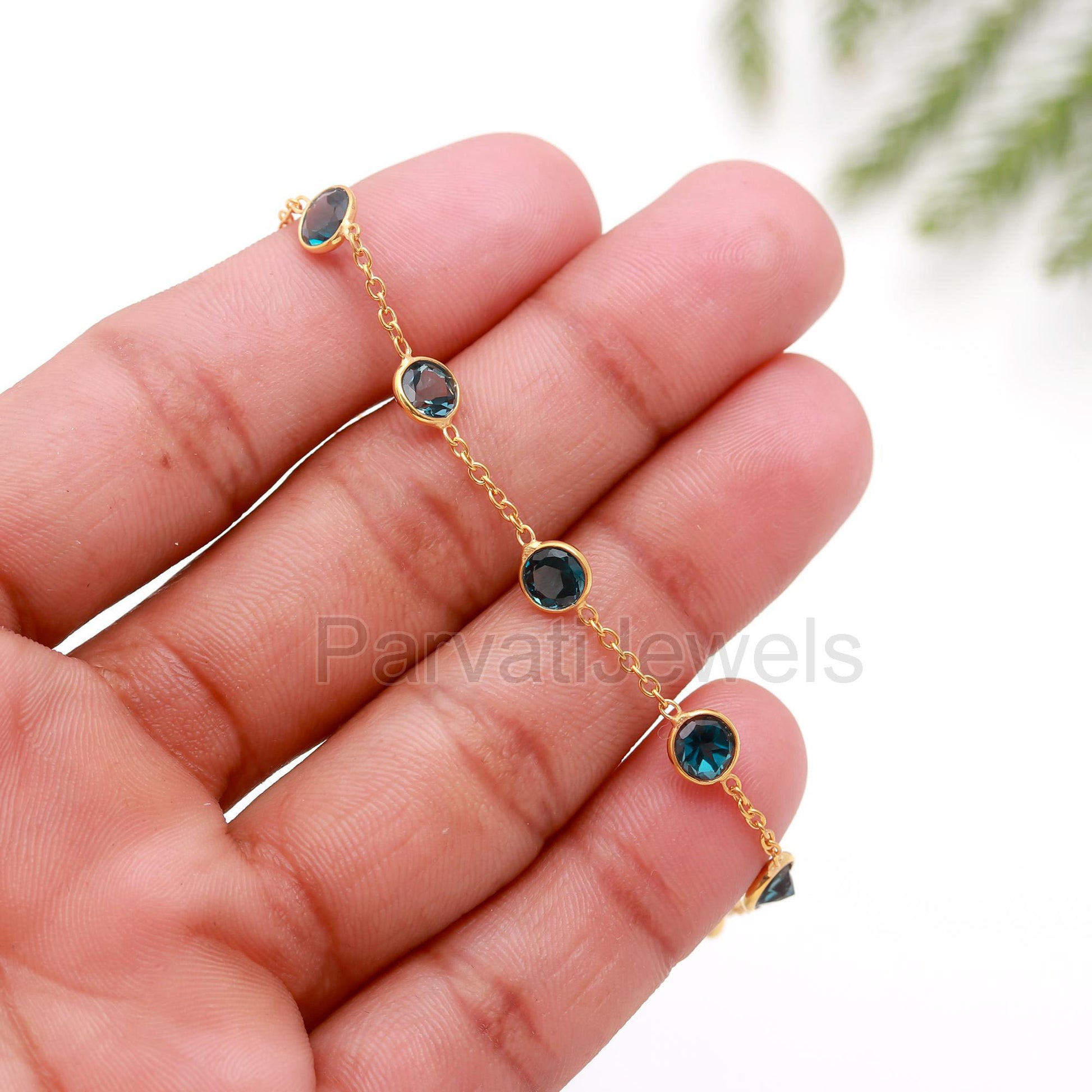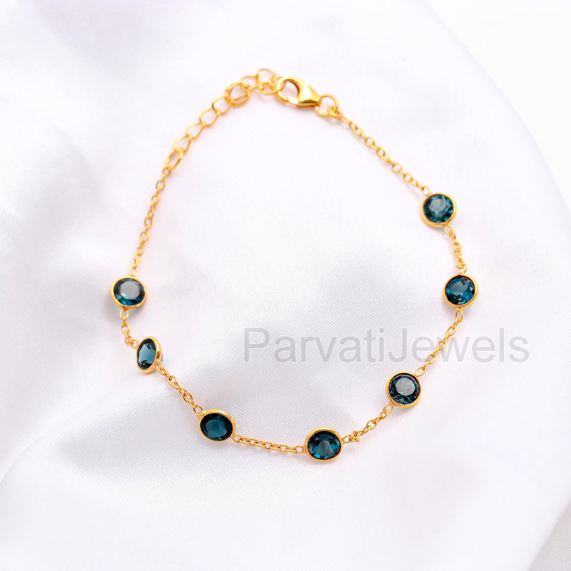 AA Natural London Blue Topaz Bracelet, 18k Solid Gold Bracelets, Gold Bracelet, Handmade Bracelets, London Blue Topaz Bracelet, Gift for her