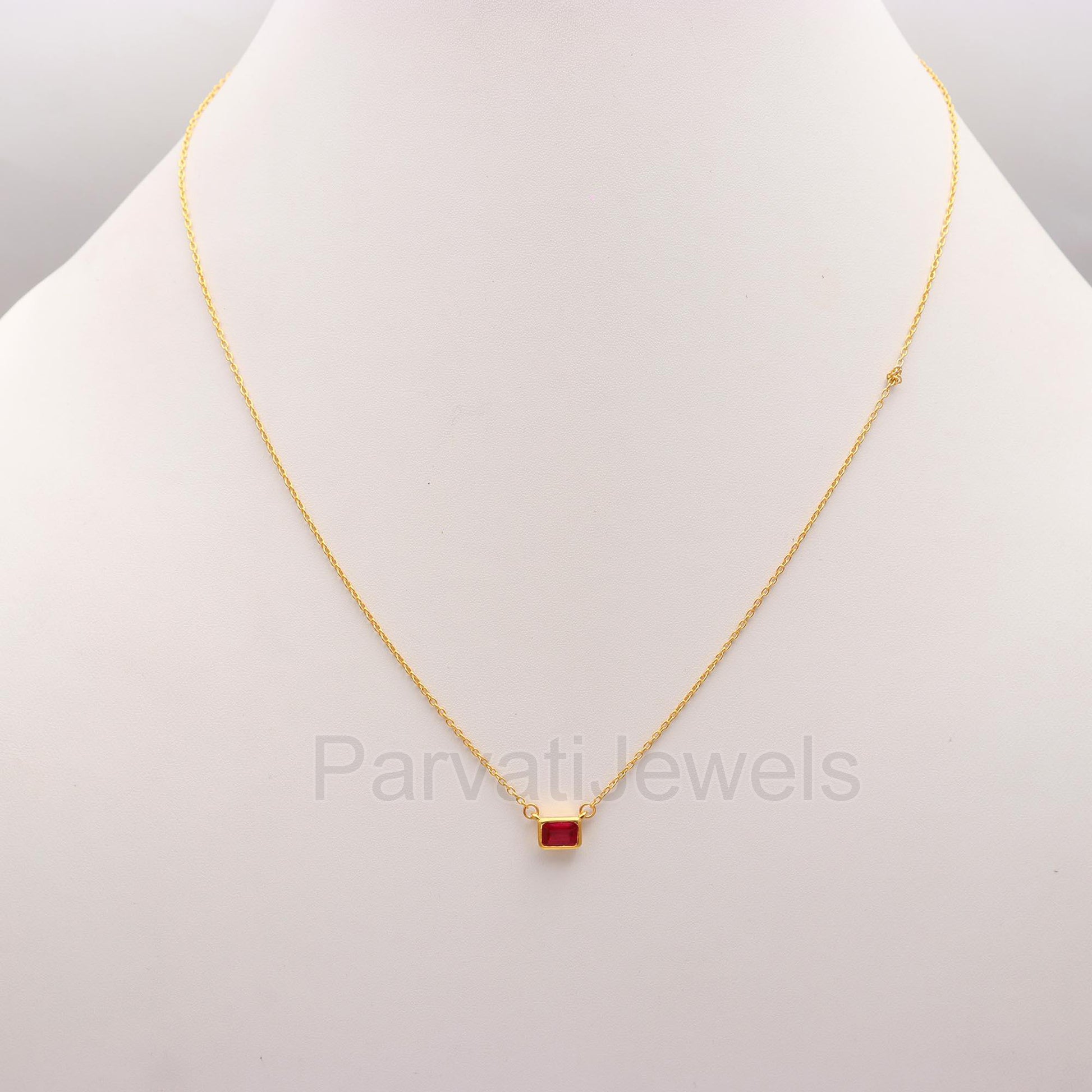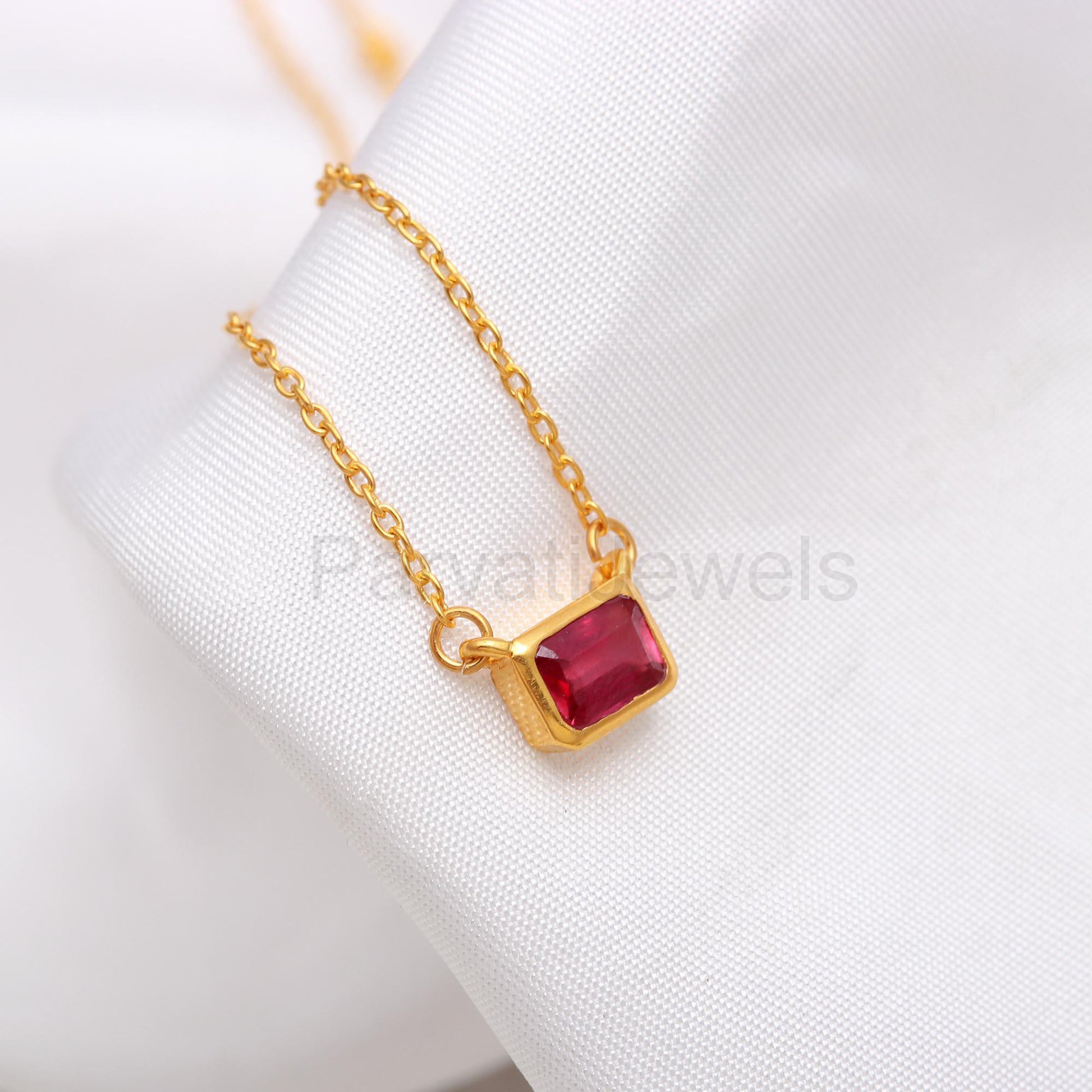 AA Pink Ruby Necklace, 18k Solid Gold Necklace, Ruby Octogon Necklace, Handmade Gold Necklace, July Birthstone Necklace, Ruby Gold Necklace