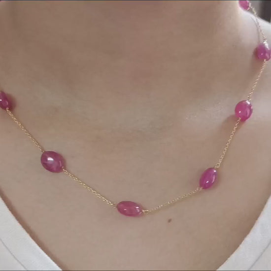 AA Ruby Necklace, 14k Solid Gold Necklace, Ruby Necklace, Gold Necklace, Cabochon Ruby Gold Necklace, Gold Jewelry, Partywear Gift Necklace