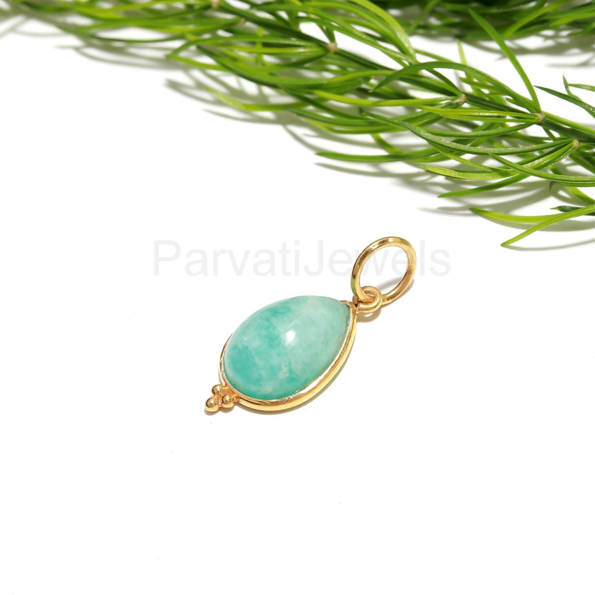 AAA Natural Amazonite Charm, 18k Solid Gold Charm, Amazonite Charm, Gold Charm, Birthstone Charm Pendant, Handmade Gold Charm, Gift for Her
