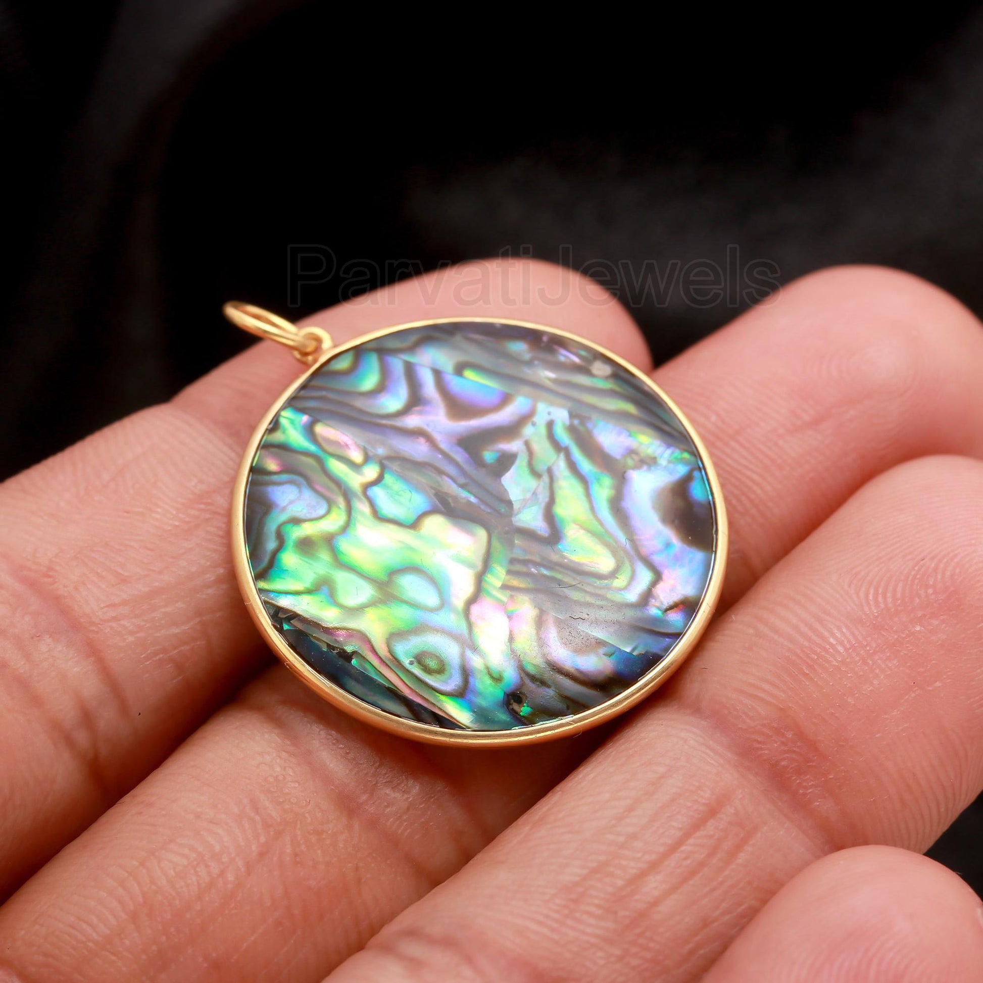 Abalone Shell Round Shaped Charm, Handcrafted Gold Charm, May Birthstone, Minimalist Gold Charm, 18k Solid Gold Charm
