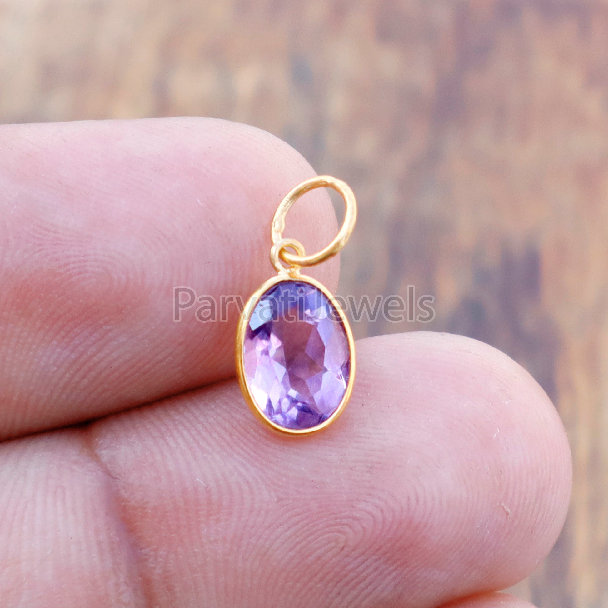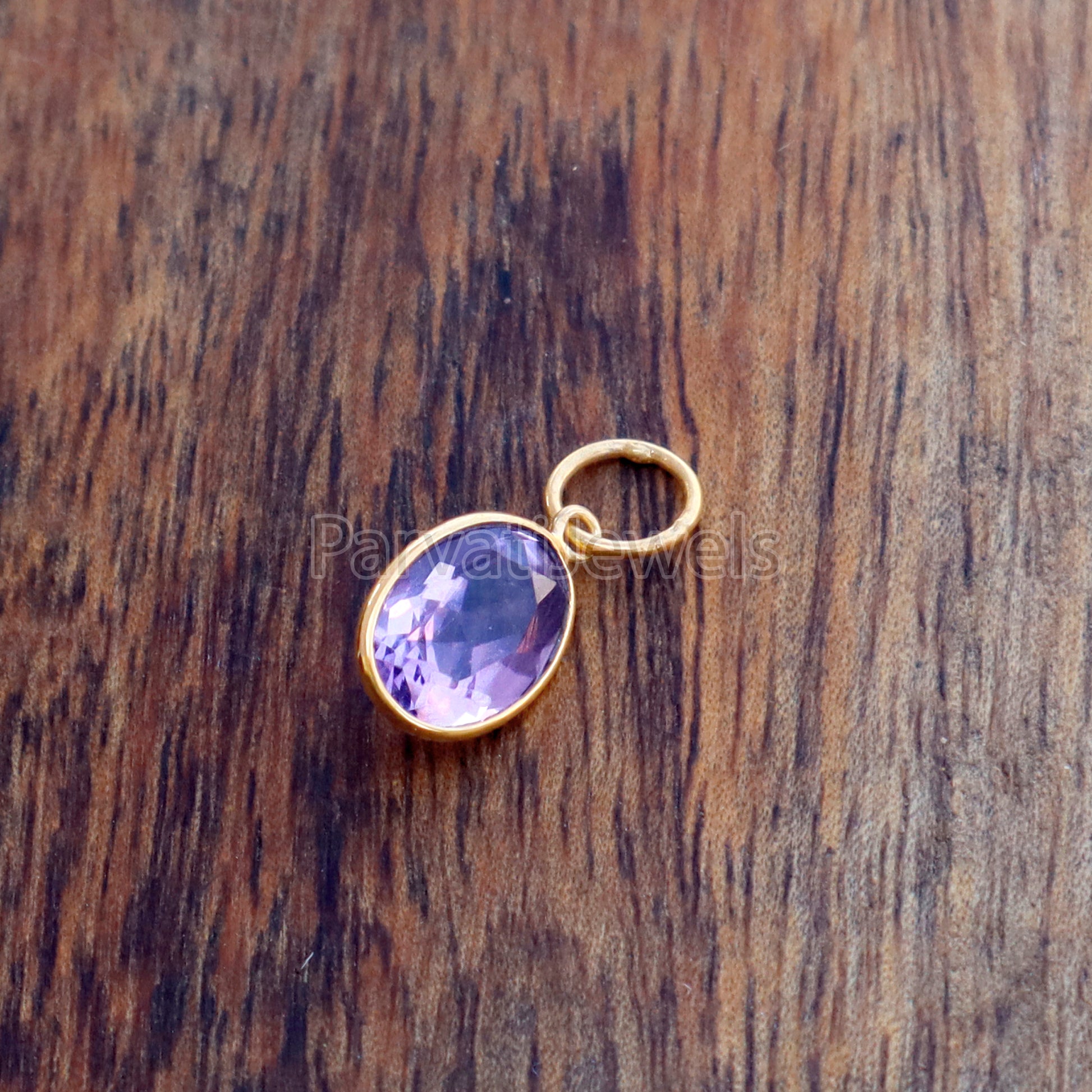 Amethyst Charm, 18k Solid Gold Charm, Natural Amethyst Charm, Gold Charm, Charm Pendant, Charm Necklace, Handmade Gold Charm, Gfit for Her