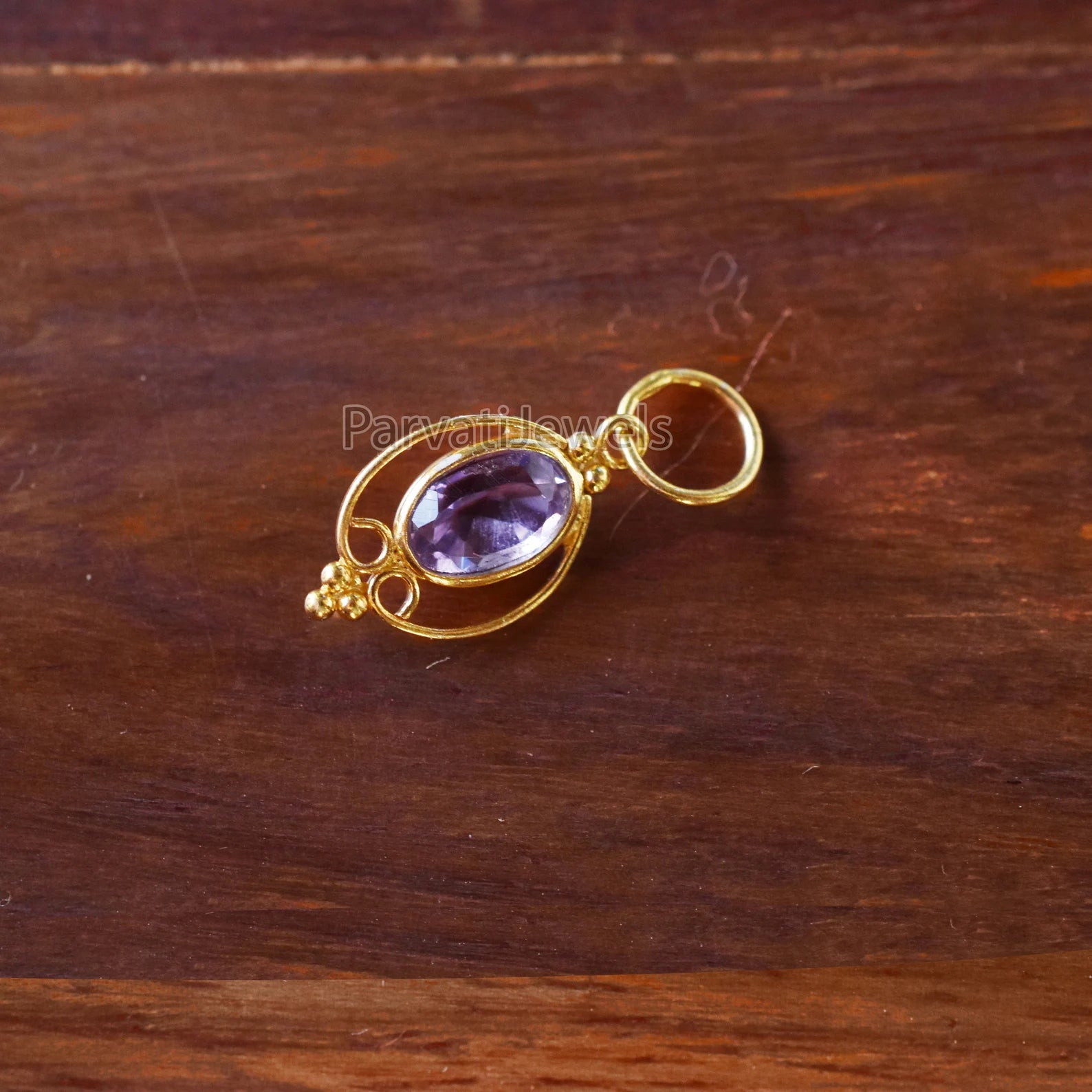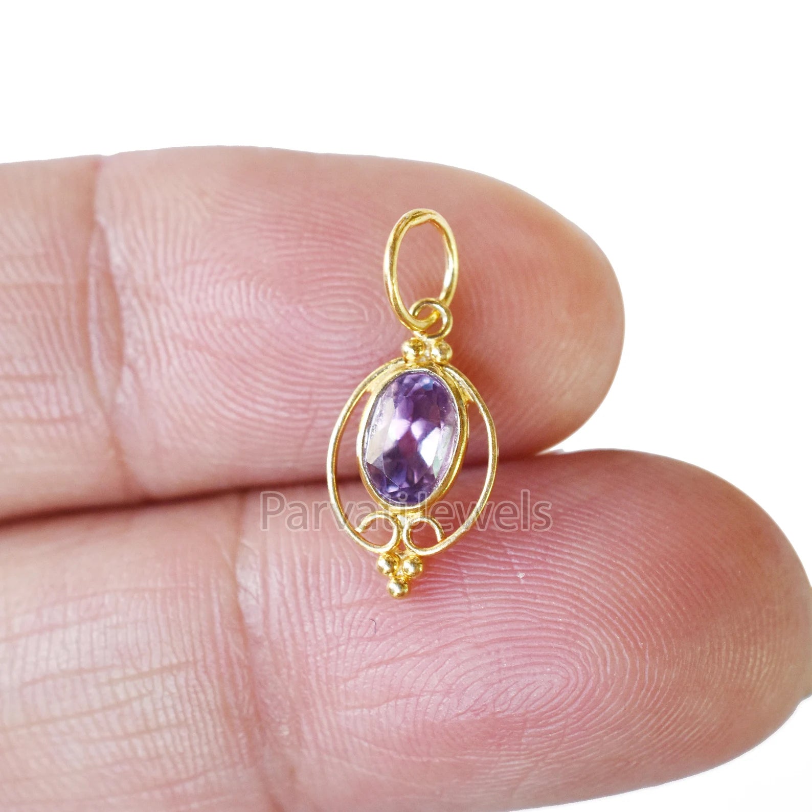Natural 18k Solid Gold Amethyst Charm, 18K Gold Charm, Charm Necklace, Handmade Gold Charm, Gfit for Her, Gold Charm For Women
