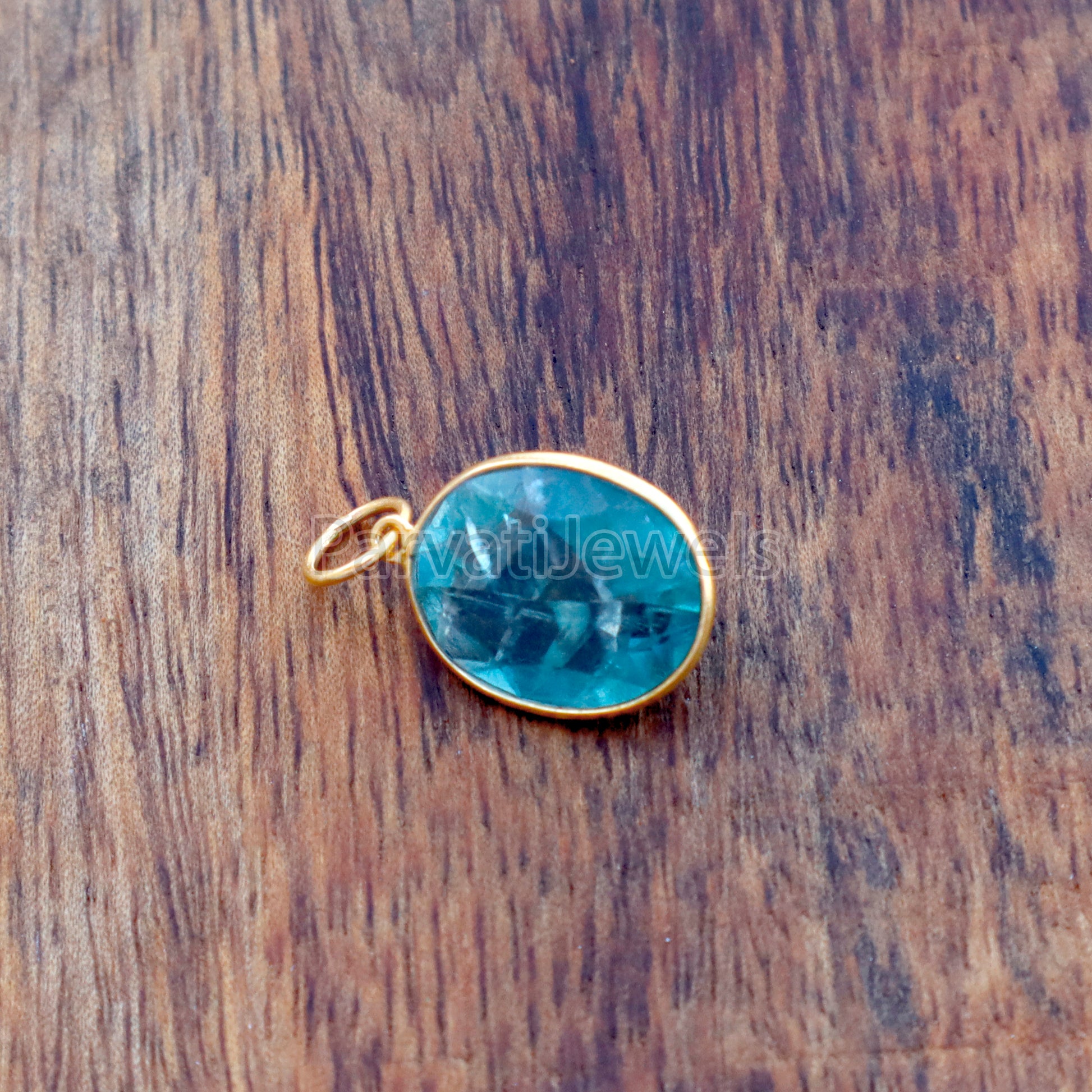 Apatite Charm, 18k Solid Gold Charm, Natural Apatite Charm, Gold Charm, Charm Pendant, Charm Necklace, Handmade Gold Charm, Gift for Her