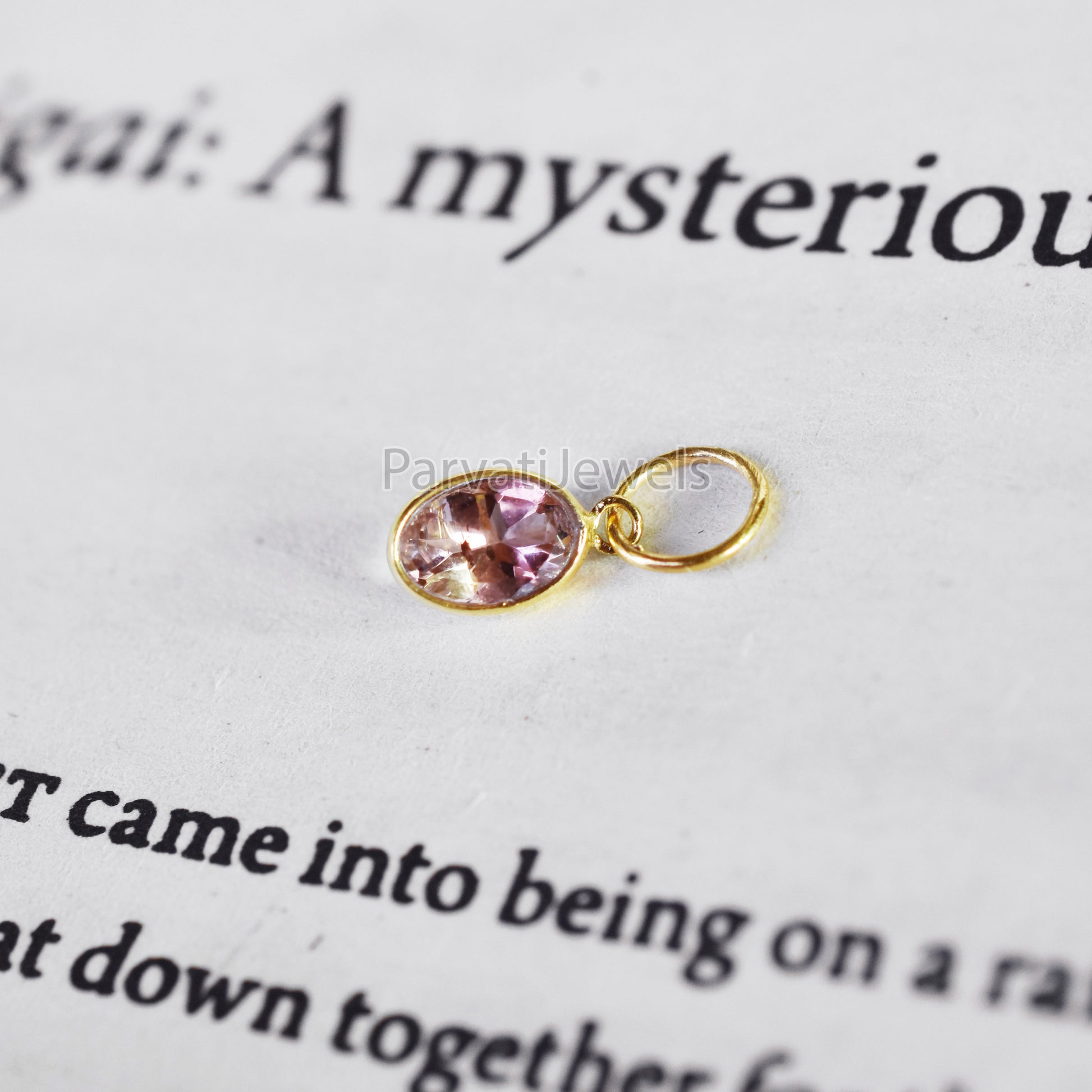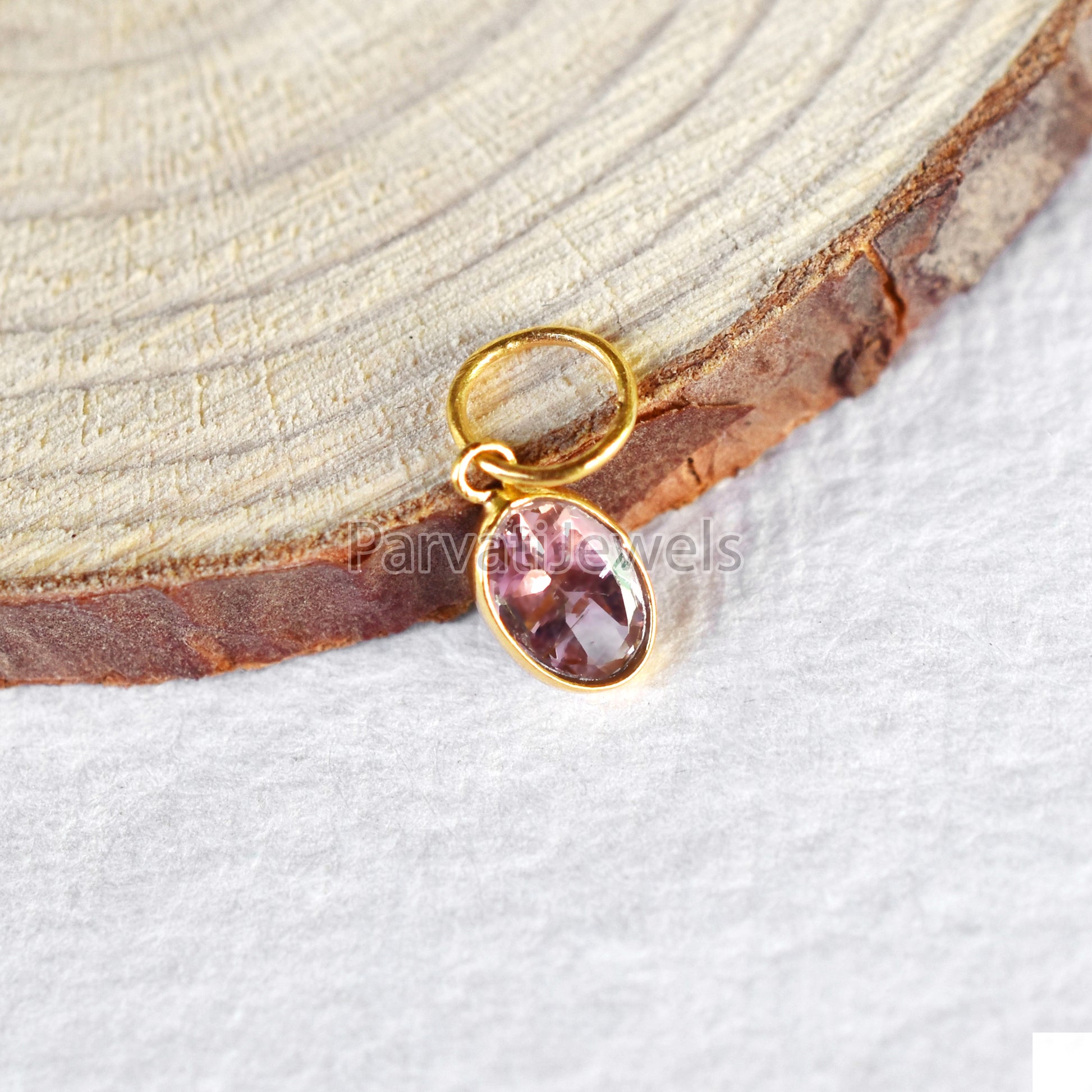 Beautiful Peach Tourmaline Charm, 18k Solid Gold Charm, Gold Charm, Charm Pendant, Natural Peach Tourmaline Charm, Charm Necklace Jewelry, Gift for her