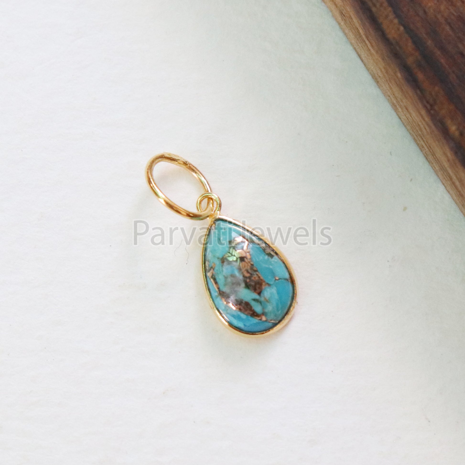 Blue Copper Turquoise Charm, 18K gold charm pendant, Handmade Gold Charm, Blue Turquoise Charm, Turquoise Dainty Charm, Minimalist Pendant