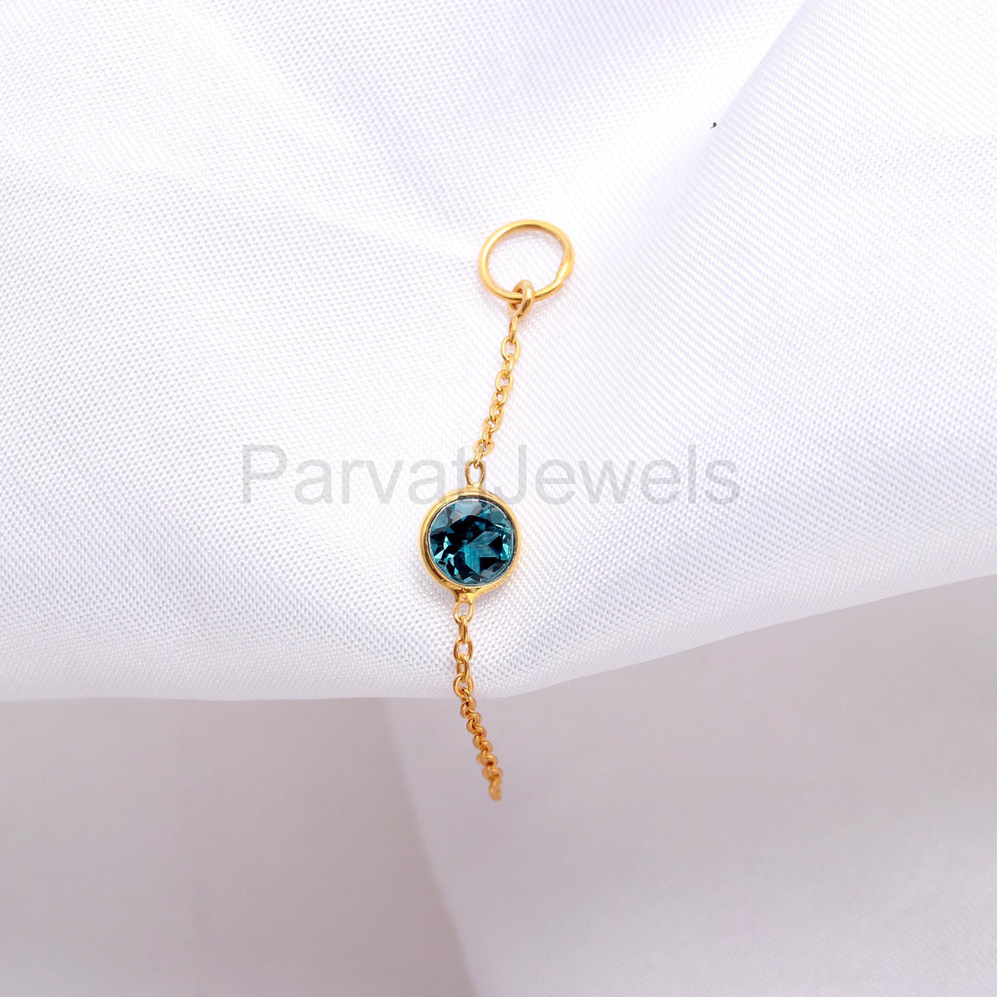 Natural London Blue Topaz Charm, 18k Solid Gold Charm, Gold Charm, Charm Pendant, Topaz Charm Necklace, Handmade Charm, Link Chain Charm