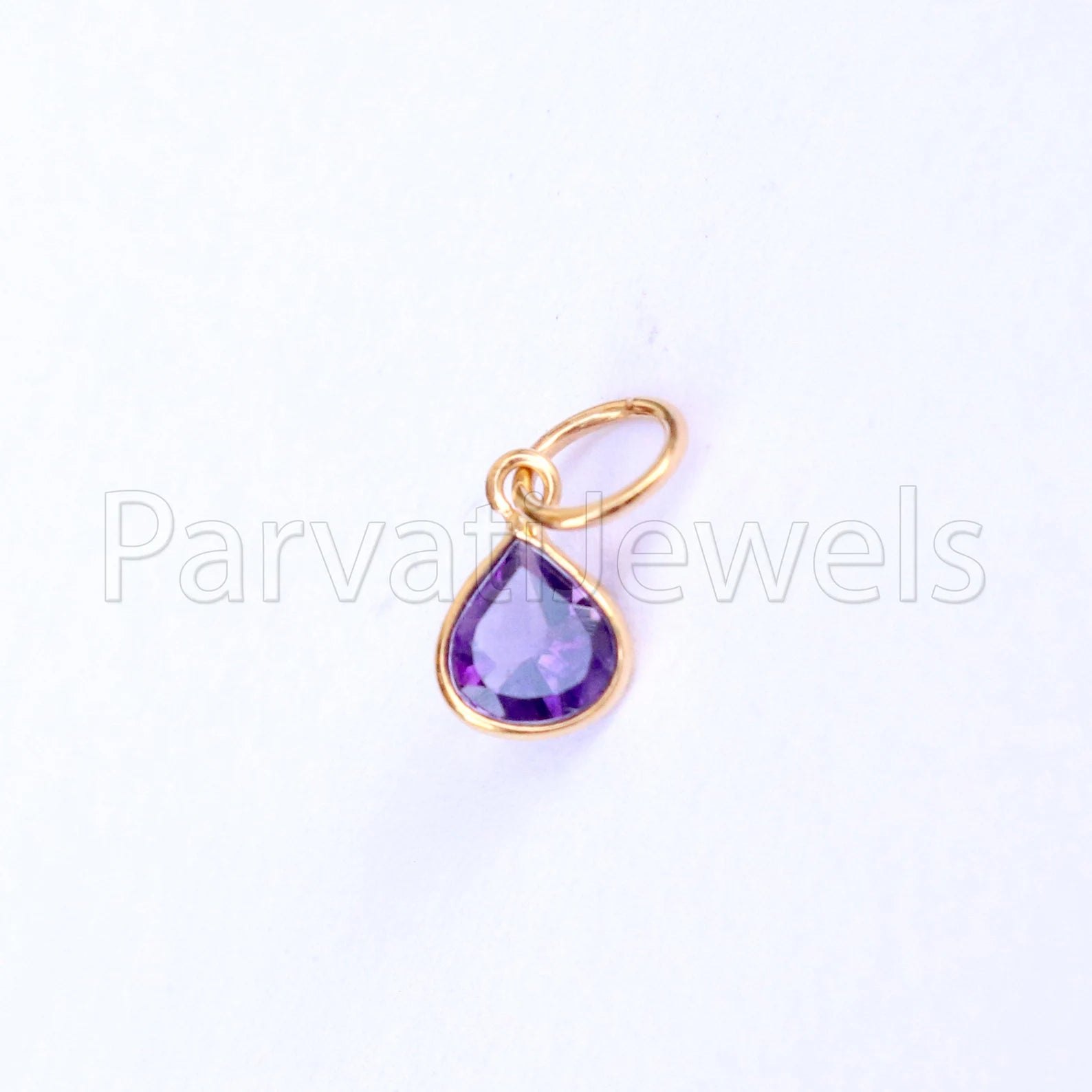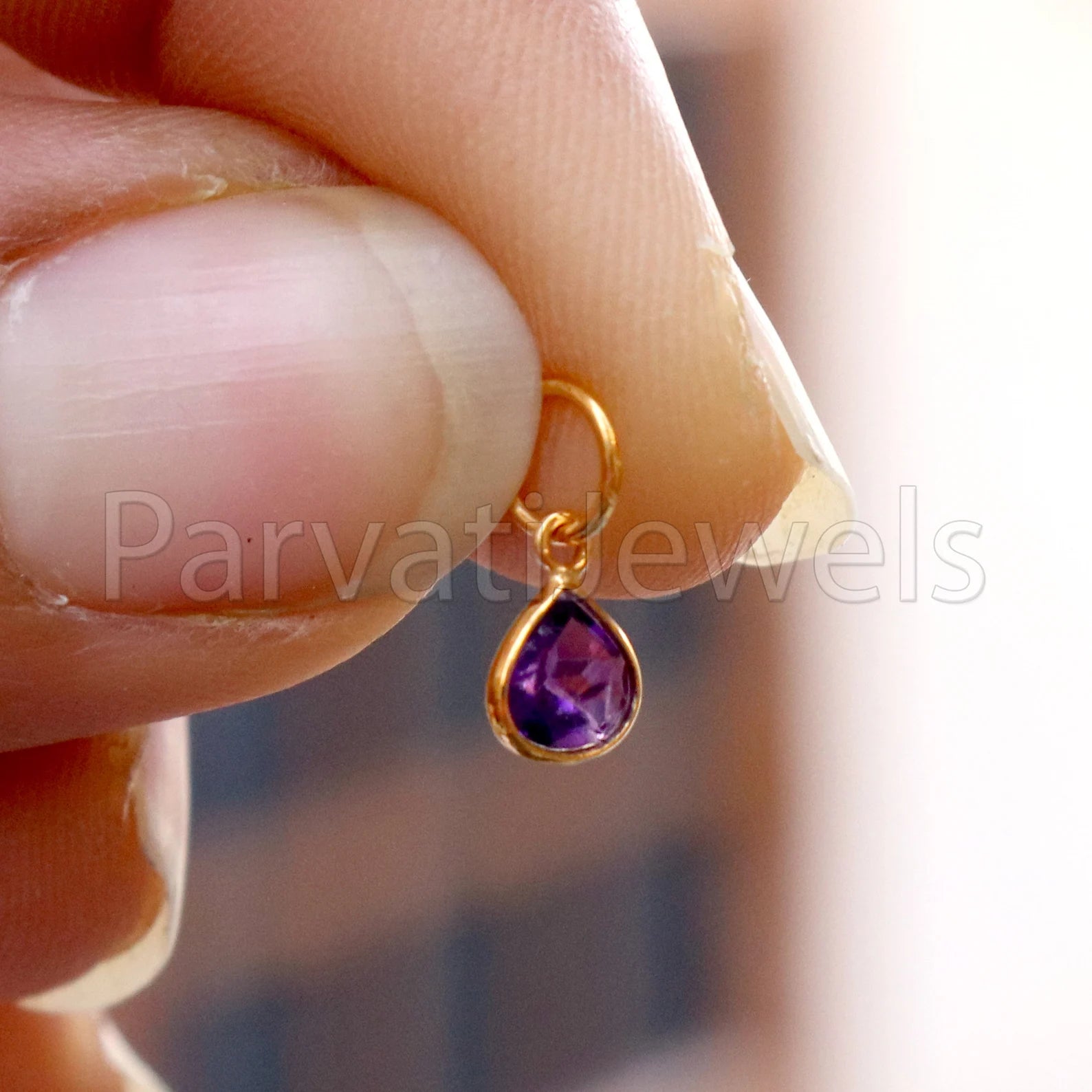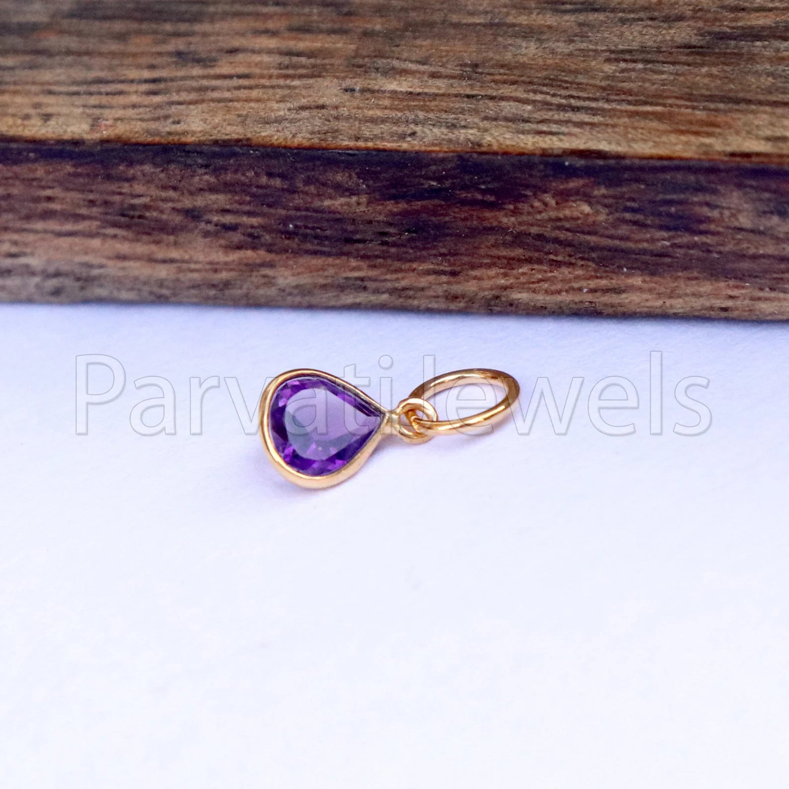 Amethyst Charm, 18k Solid Gold Charm, Natural Amethyst Charm, Gold Charm, Charm Pendant, Charm Necklace, Handmade Gold Charm, Gfit for Her