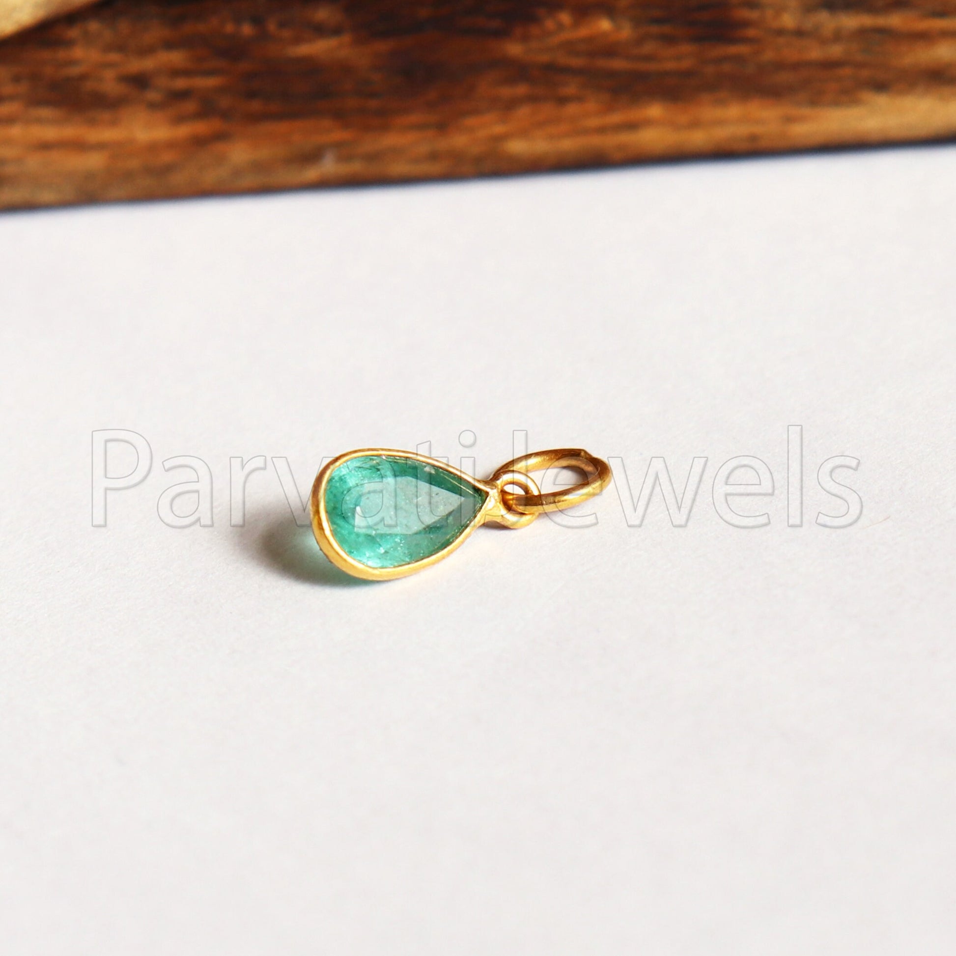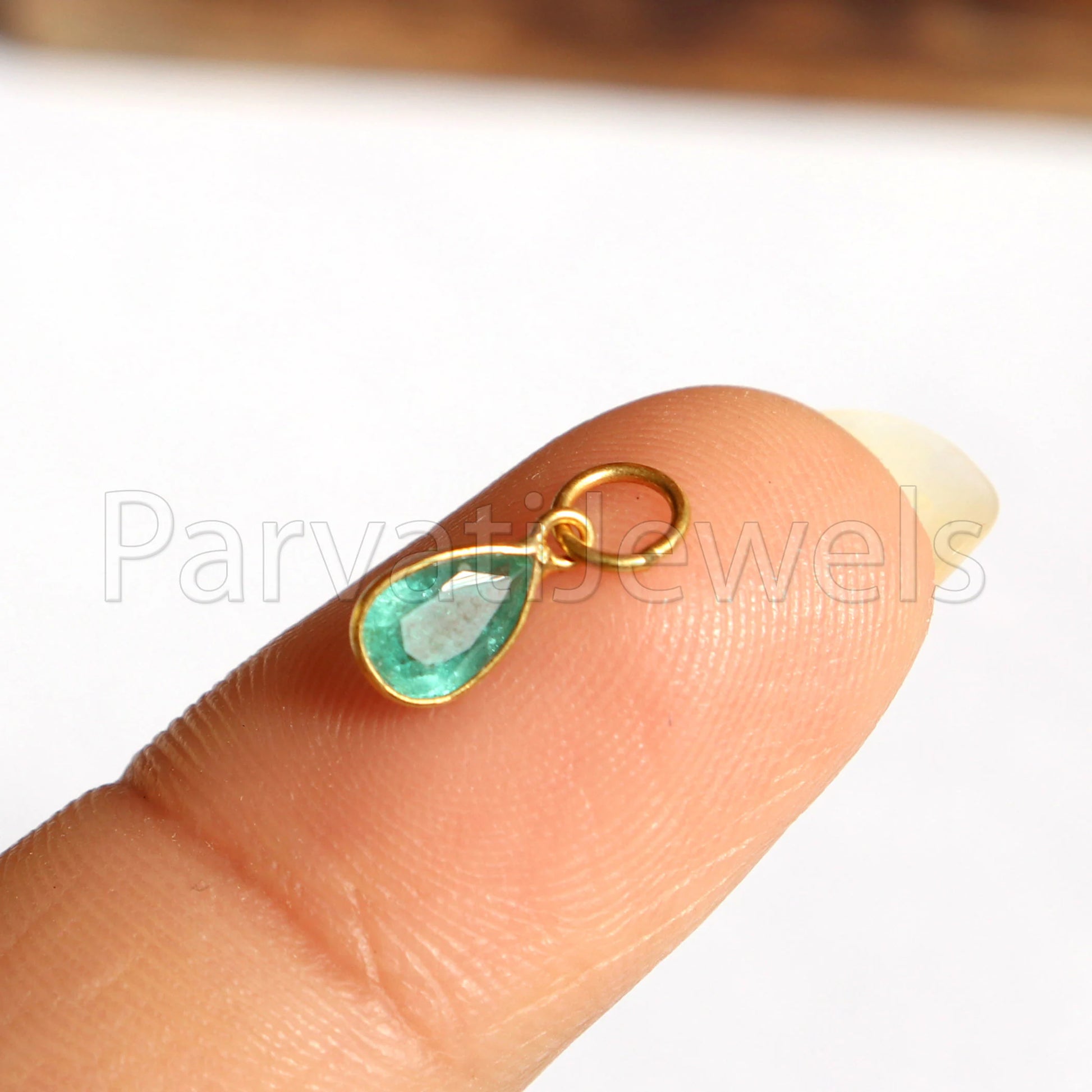 Emerald Charm, 18k Solid Gold Charm, Natural Emerald Charm, Gold Charm, Charm Pendant, Charm Necklace, Handmade Gold Charm