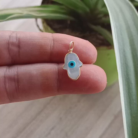 Evil Eye Charm, Hamsa Hand Charm, Evil Eye Charm, 18k Solid Gold Charm, Mother of Pearl Gold Charm, Solid 18K Gold MOP Charm, Good luck Charm