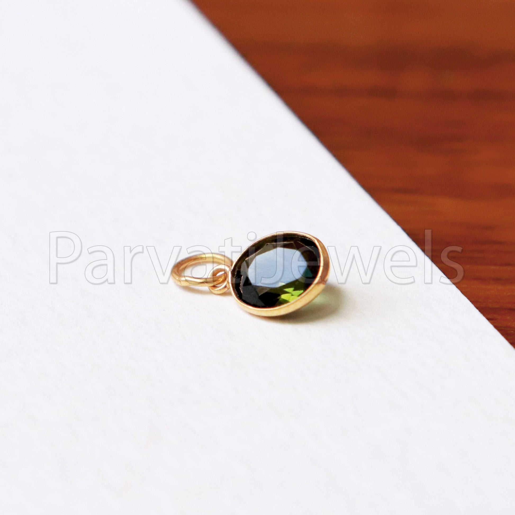 Heena Green Tourmaline 18k Solid Gold Charm pendant, Green Tourmaline Charm, DAINTY Tourmaline Charm , 18KT Solid Gold, Natural Tourmaline