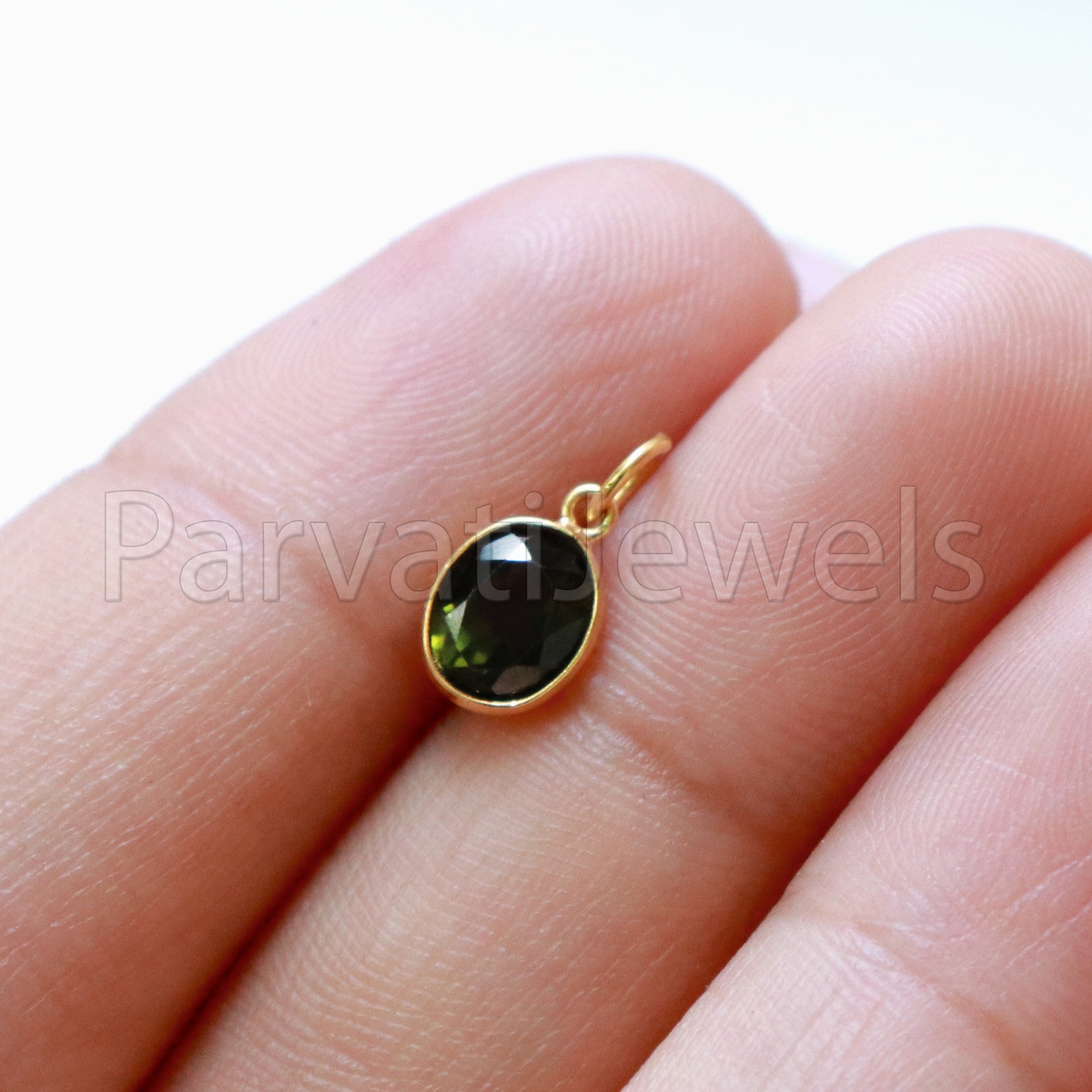 Heena Green Tourmaline 18k Solid Gold Charm pendant, Green Tourmaline Charm, DAINTY Tourmaline Charm , 18KT Solid Gold, Natural Tourmaline, Gift For her,