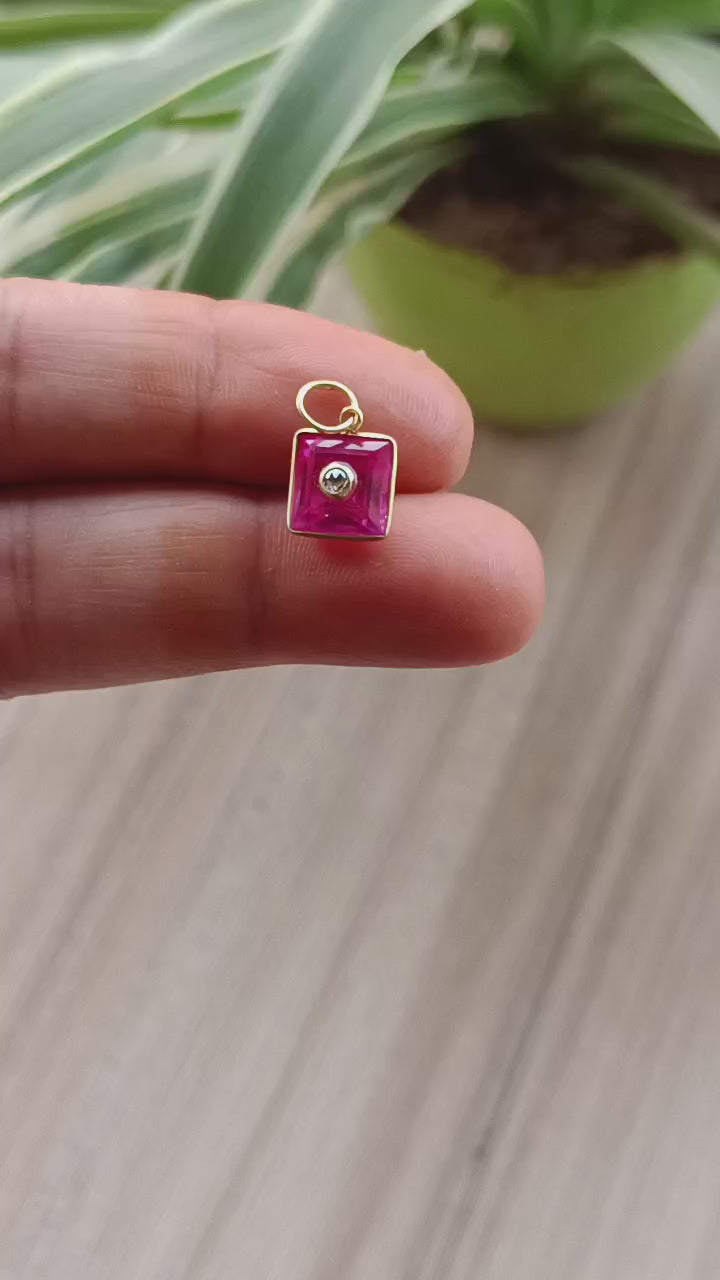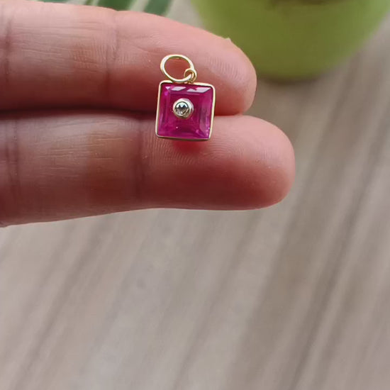 Lab-Created Ruby & Diamond Charm 18k Solid Gold Charm, Lab-Created Ruby Charm, Gold Charm, Ruby with Natural Diamond charm, SOLID 18K