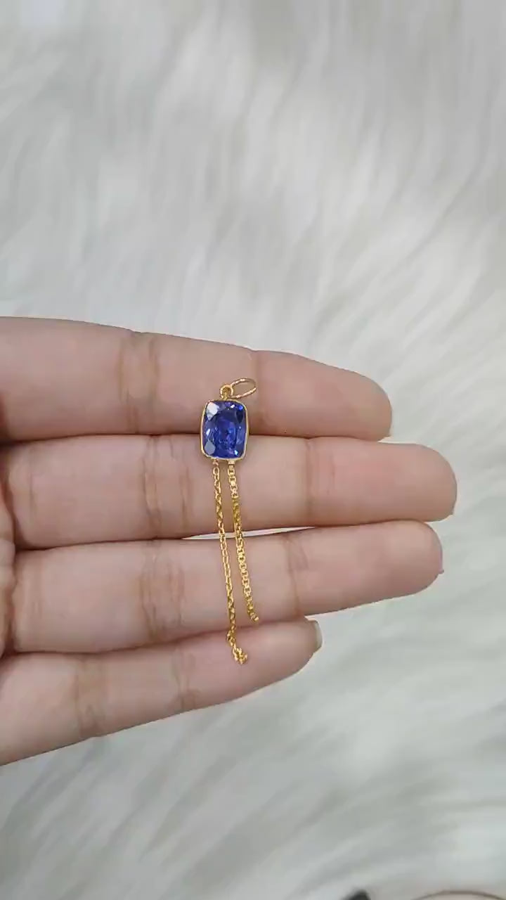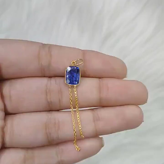 Lab Created Tanzanite Charm With Tassel, 18k Solid Gold Charm, lab Created Tanzanite Charm, Gold Charm, Faceted Tanzanite Charm,Gift For Her