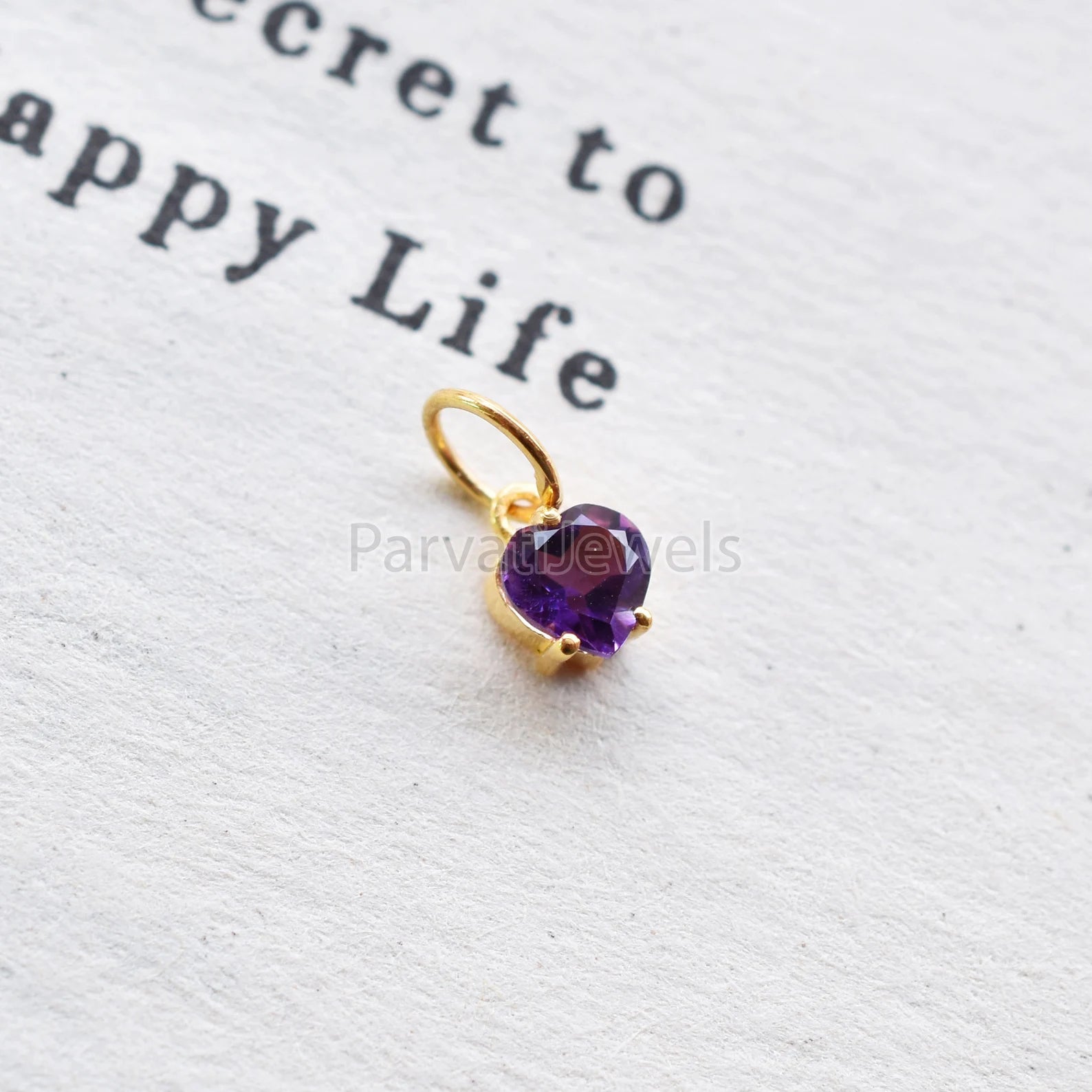 Beautiful Heart Shape Amethyst 18K Solid Gold Charm, Gold Charm, Amethyst Gold Charm, Solid Gold Charm, Handmade Gold Charm For Gifting