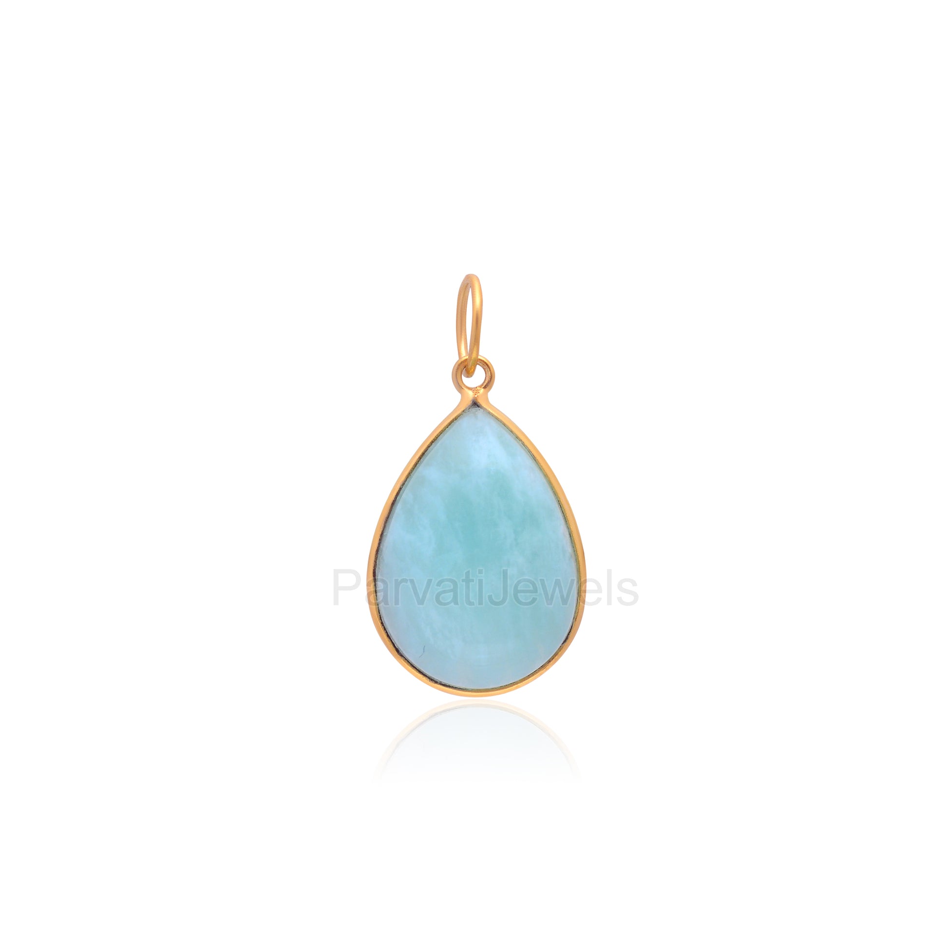 Natural Blue Amazonite Charm, 18k Solid Gold Charm, Blue Amazonite Charm, Gold Charm, Charm Pendant, Handmade Gold Charm, 7x10 & 8x12 Pear Charm Pendant, Gift for Mom Charm, Partywear Gift Charm, Gift For Her Charm