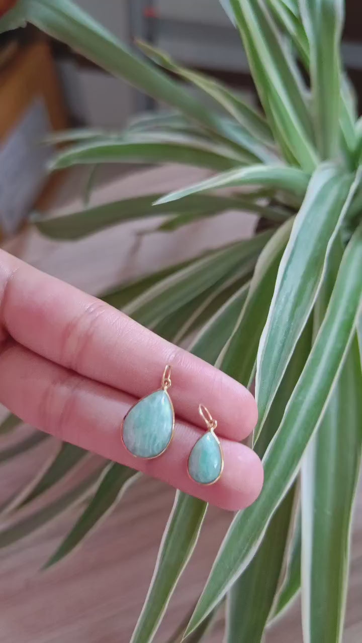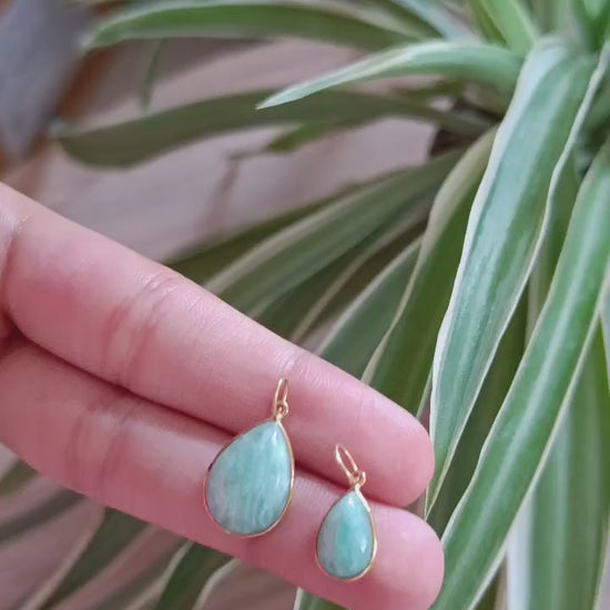 Natural Amazonite Charm, 18k Solid Gold Charm, Amazonite Charm, Gold Charm, Charm Pendant, Handmade Charm, 7x10 & 8x12 Pear Charm Pendant