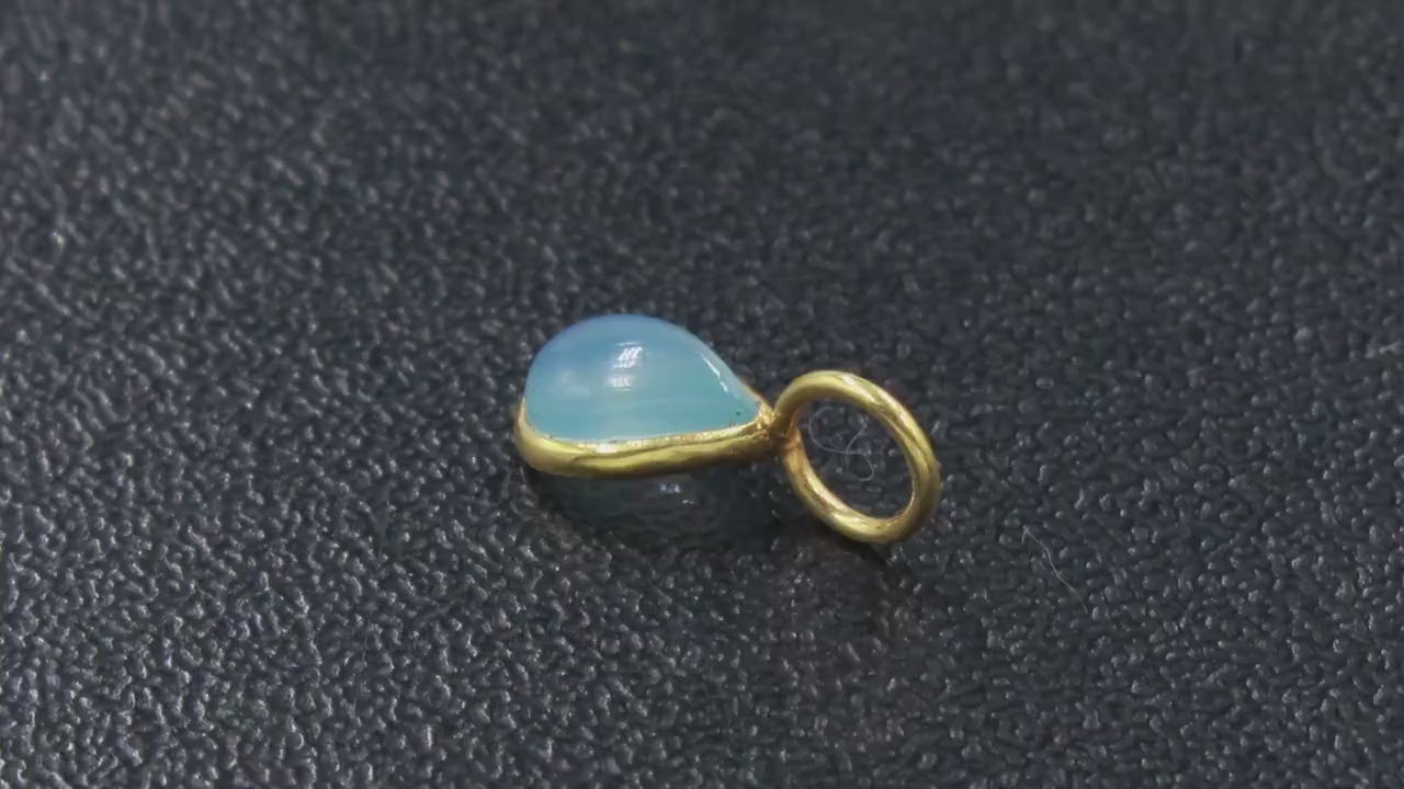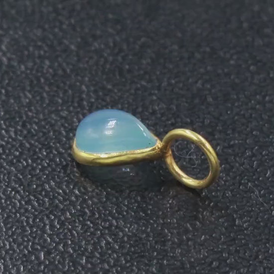 Natural Blue Chalcedony Charm, Solid 18K Gold Charm, Blue Chalcedony Gold Charm, March Birthstone Charm, Handmade Gold Charm, Gift For Mom