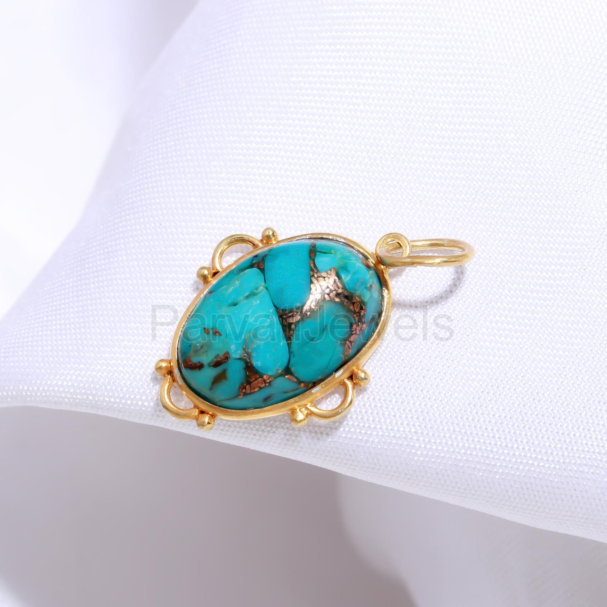 Natural Blue Copper Turquoise Charm, Solid 18K Gold Charm Pendant, Handmade Gold Charm, Blue Turquoise Charm, Minimalist Gold Charm Pendant
