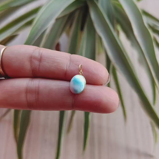Natural Blue Larimar Gemstone Charm, 18k Gold Charm Larimar, Gold Charm, Minimalist Gold Charm, Handmade Gold Charm Pendant, Gift For Her, Gift For Wife