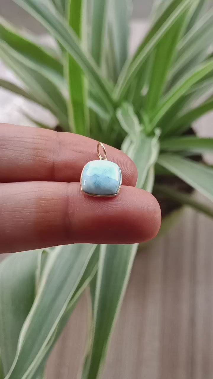 18k Solid Gold Natural Larimar Gemstone Charm, 18k Gold Charm Larimar, Gold Charm, Minimalist Gold Charm, Larimar Gold Charm For Jewelry