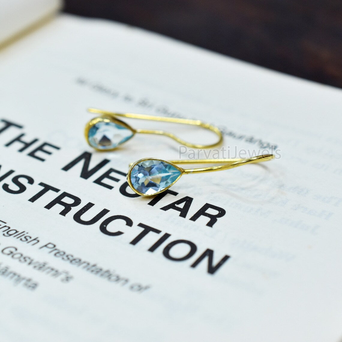 Natural Blue Sapphire Gemstone 18k Solid Gold Earrings, Gold Earrings, Blue Topaz Dangler Earrings, Natural Gold Earrings, Handmade Earring, Gift for her