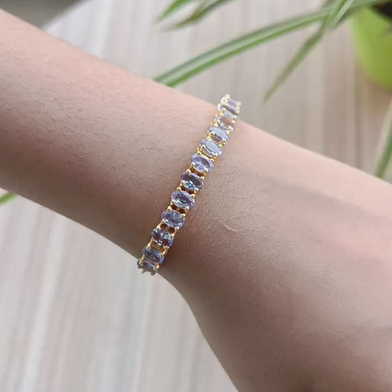 Natural Blue Tanzanite Oval Tennis Gold Vermeil Bracelet, Solid 925 Silver Tennis Bracelet, December Birthstone Bracelet, Partywear Bracelet