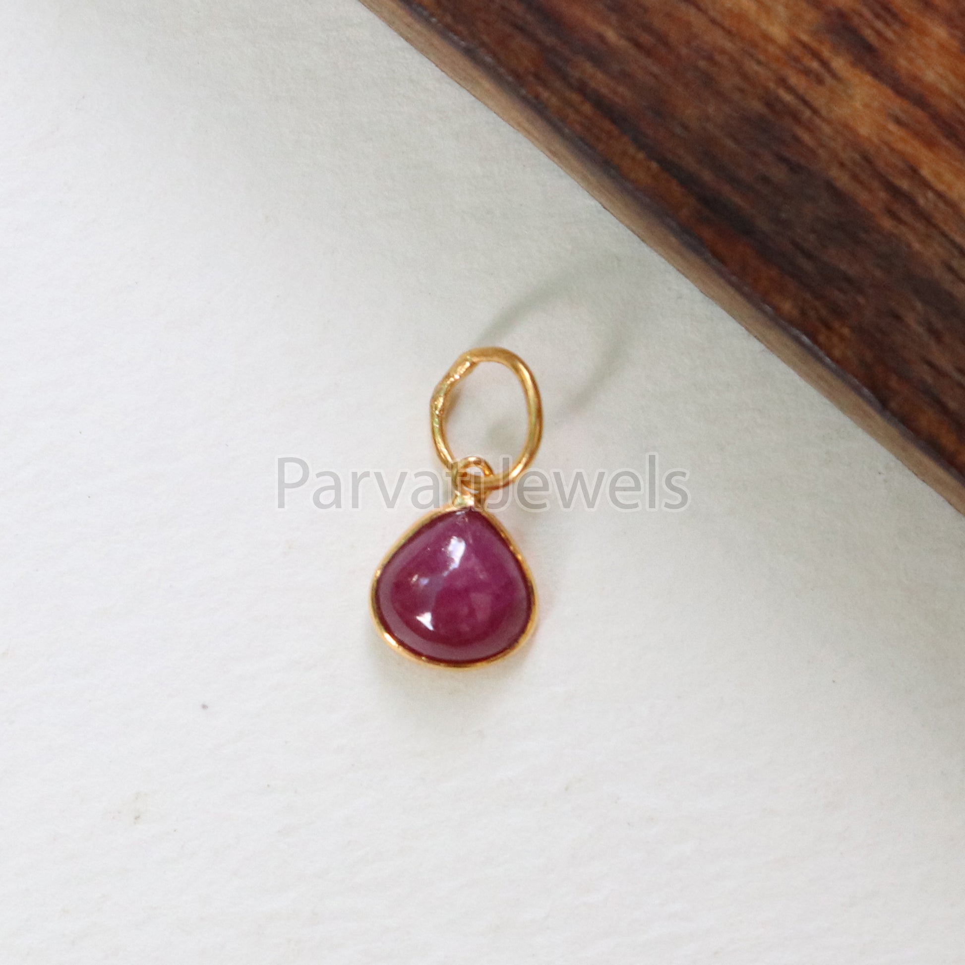 Natural Cabochon Ruby Charm, 18k Solid Gold Charm, Handmade Gold Charm, Charm Pendant, Charms Necklace, Minimalist Pendant, Natural Ruby Charms