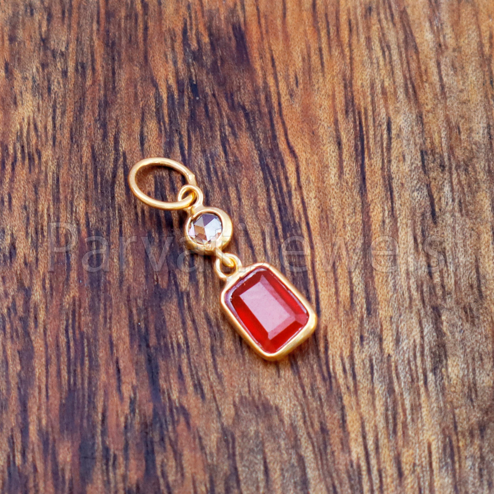 Natural Carnelian & Natural Rose Cut Diamond Charm, 18k Solid Gold Charm, Carnelian Charm, Gold Charm, Necklace, MOTIVATION STONE, 18K GOLD