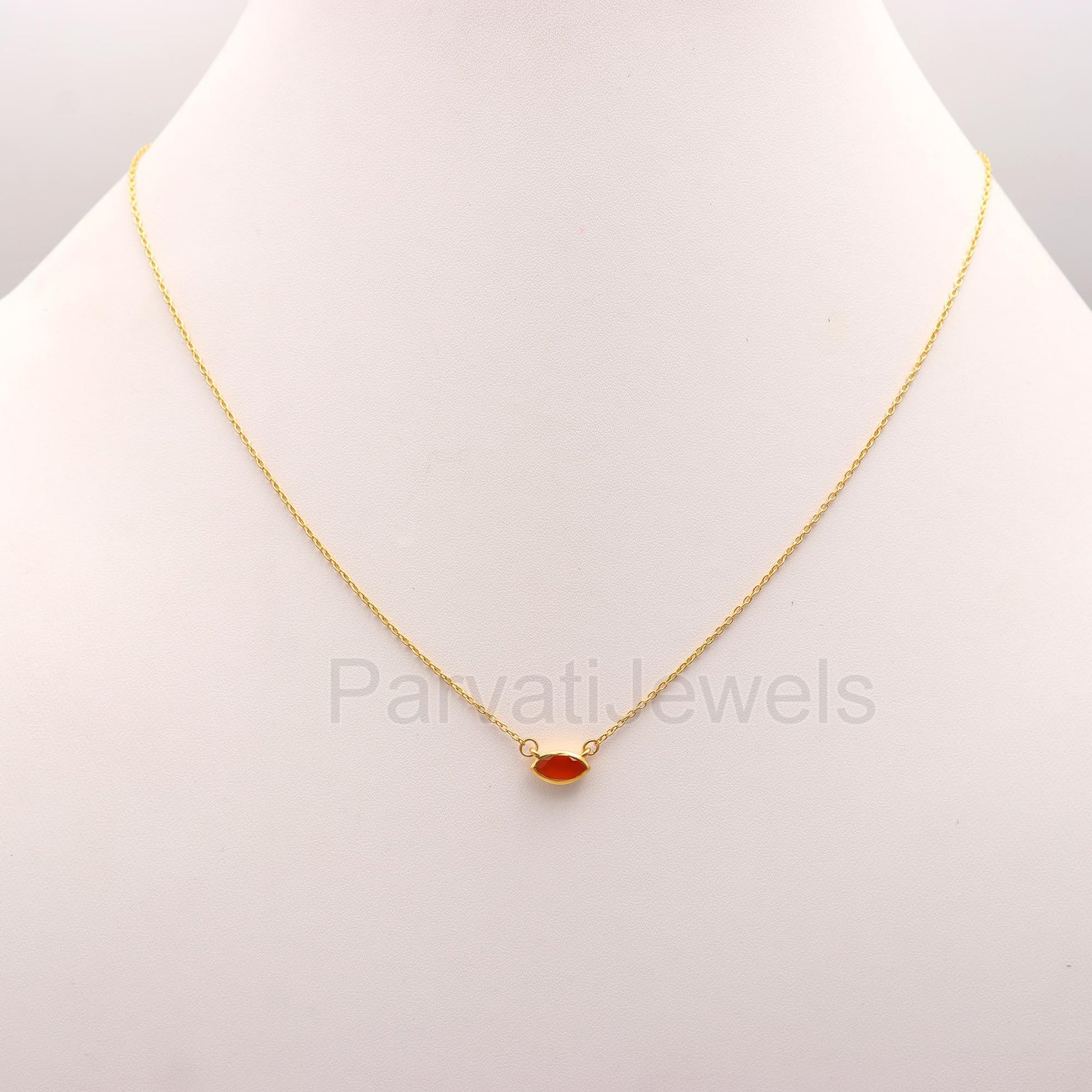 Natural Carnelian Necklace, 18k Solid Gold Necklace, Carnelian Necklace, Handmade Gold Necklace, July Birthstone Necklace, Gold Necklace