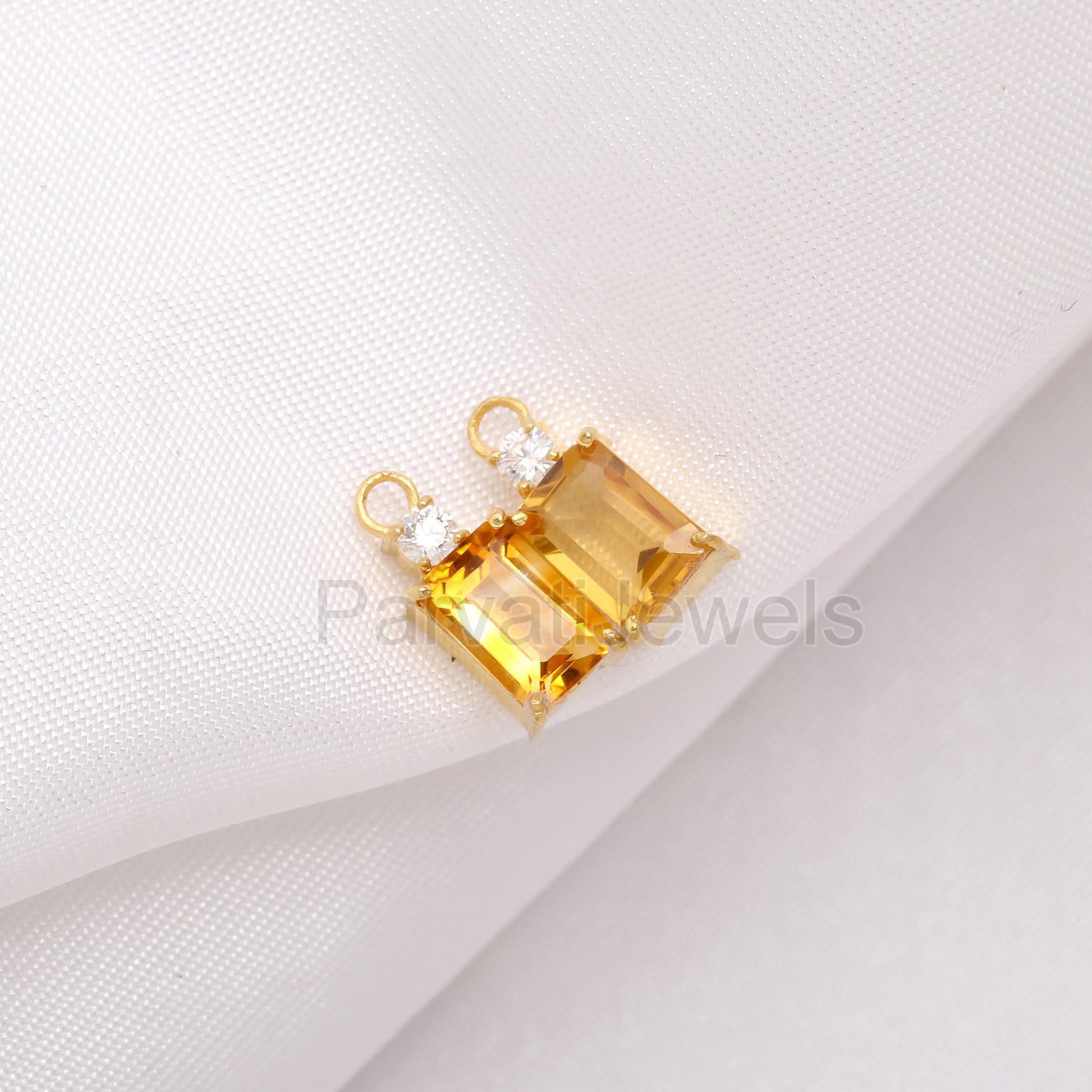 Natural Citrine and Moissanite Earrings, 18k Solid Gold Earrings, Handmade Gold Earrings, Citrine & Moissanite Earrings, Gift for her,