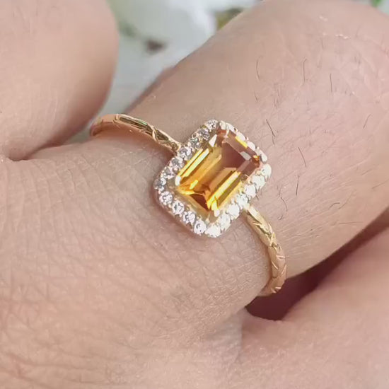 Natural Citrine With Diamond Gold Ring, 14K Solid Gold Ring, Diamond Ring, Anniversary Gift, Citrine Gold Ring, November Birthstone Ring