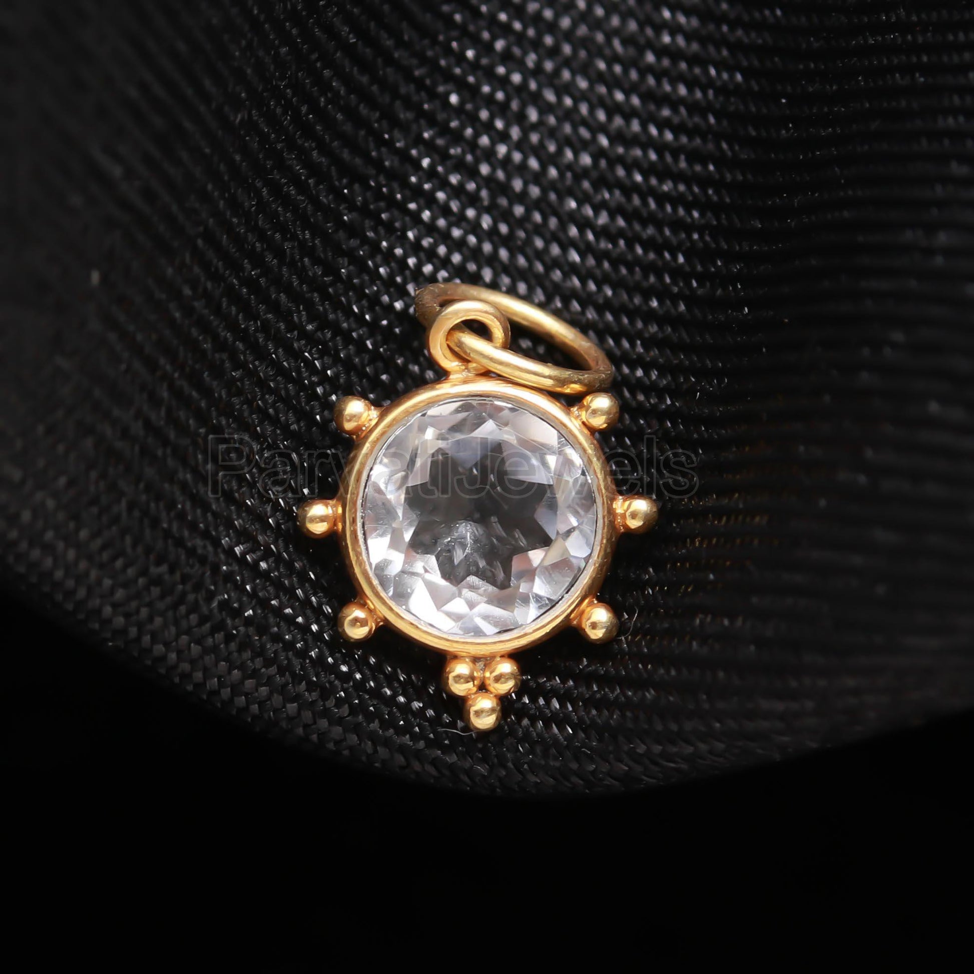 Natural Clear Quartz Charm, 18k Solid Gold Charm, Clear Quartz Charm, Gold Charm, Quartz Charm Pendant, Charm Necklace, Handmade Gold Charm
