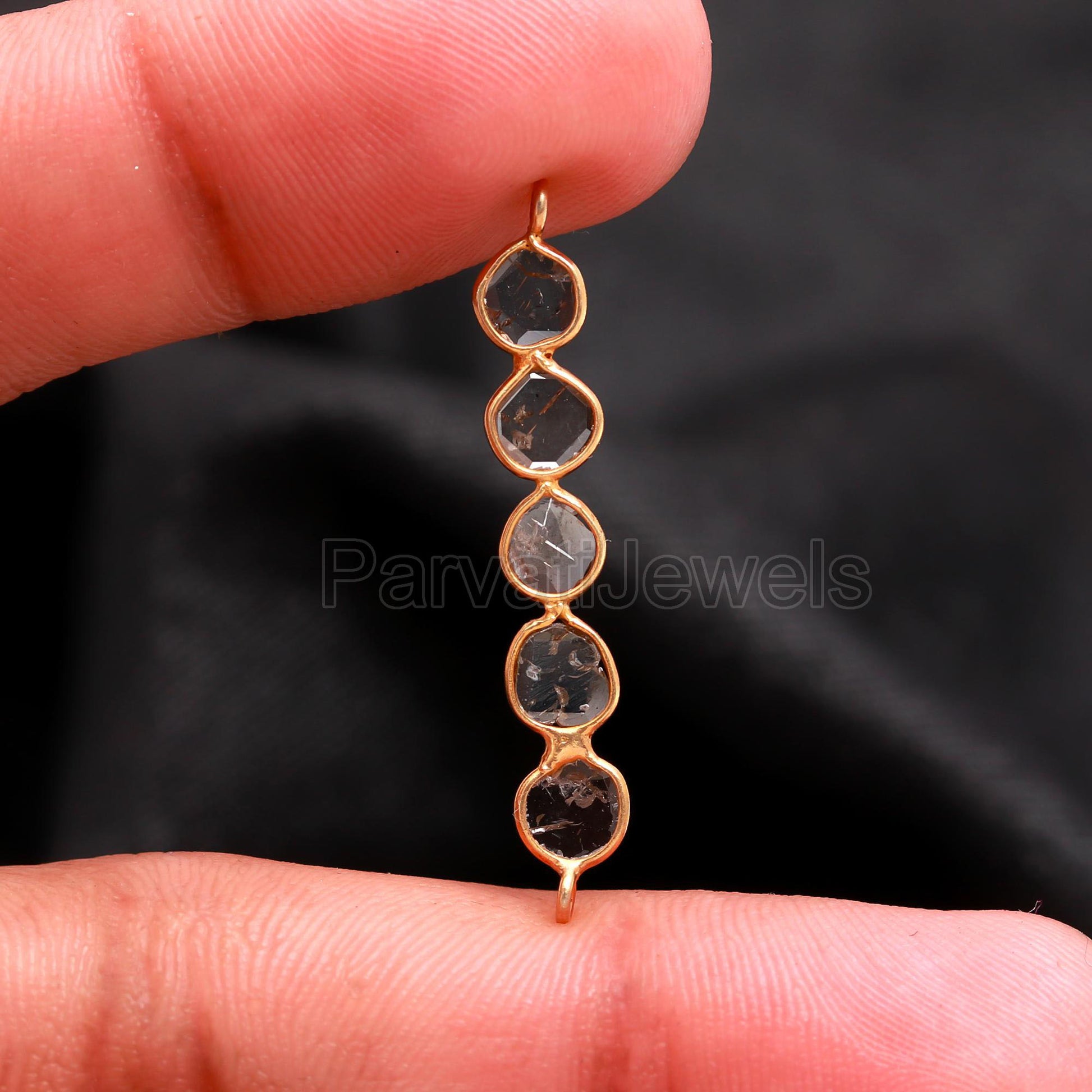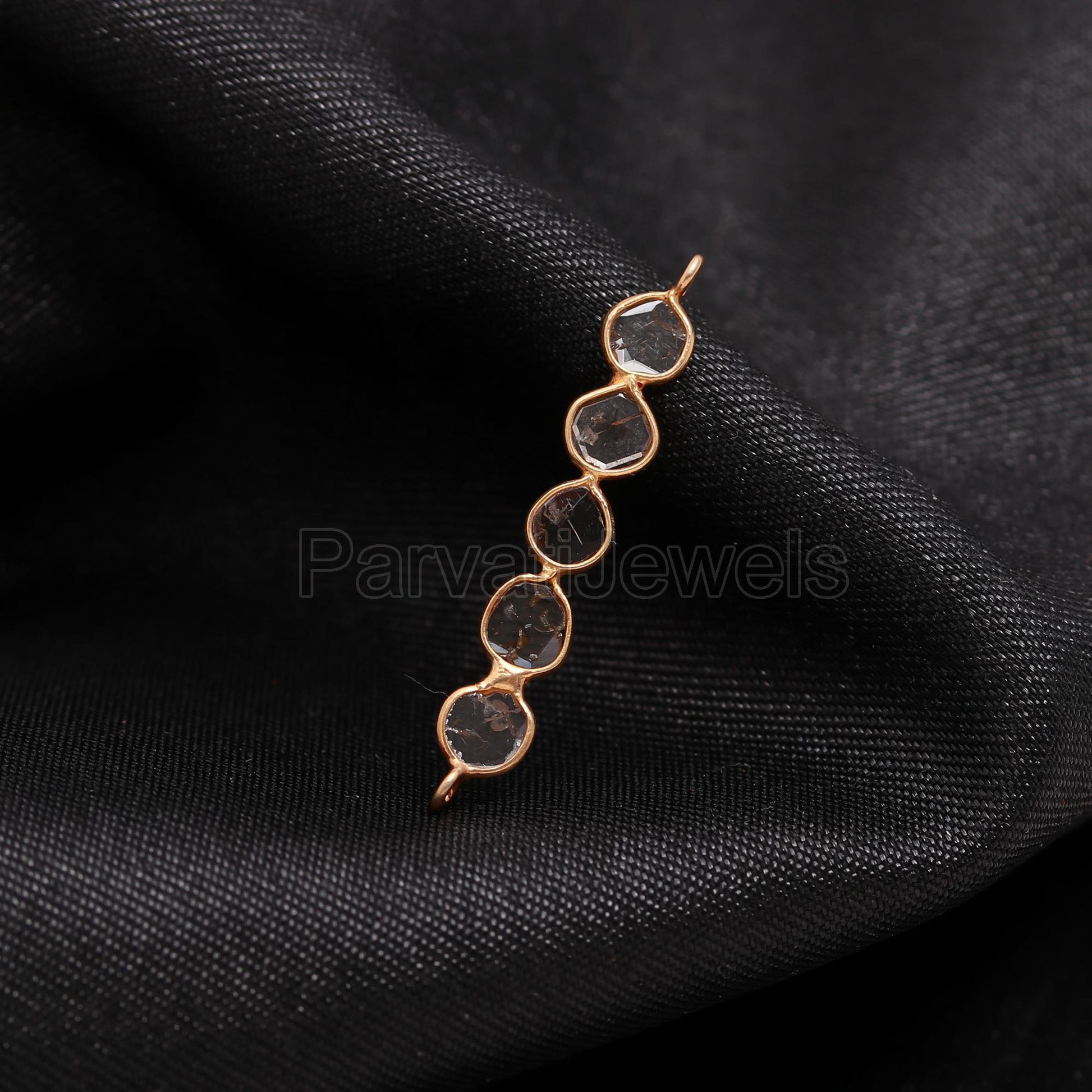 Natural Diamond Connector Charm, 18k Solid Gold Connector, Light Brown Polki Slice Charm, Gold Connector Charm, Gift for her