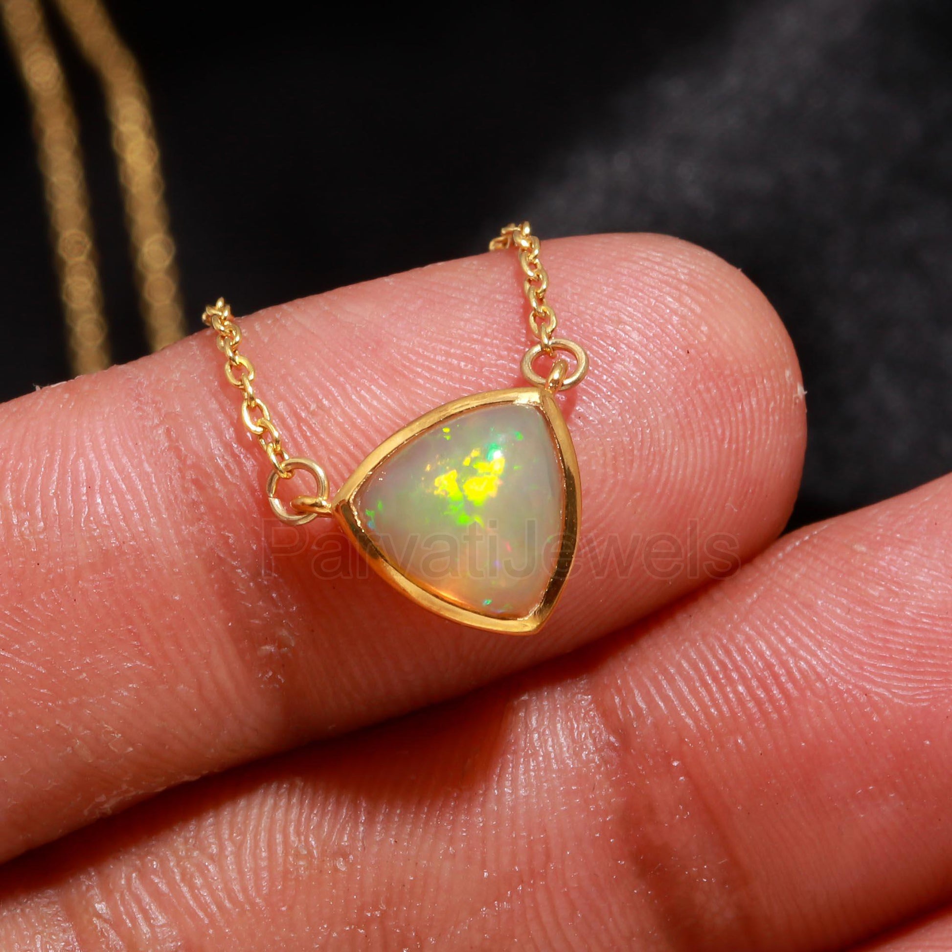 Natural Ethiopian Opal 18k Solid Gold Charm, Opal Pendant Necklace, Handmade Gold Necklace, Opal Gold Necklace, October Birthstone Necklace