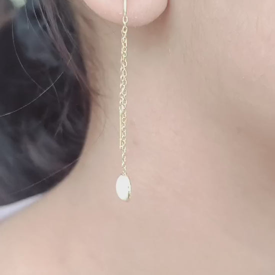 Natural Ethiopian Opal Gold Earring, Solid Gold Earrings, Handmade Gold Earrings, Minimalist Hanging Earrings, Thread Earring, Gift for Her