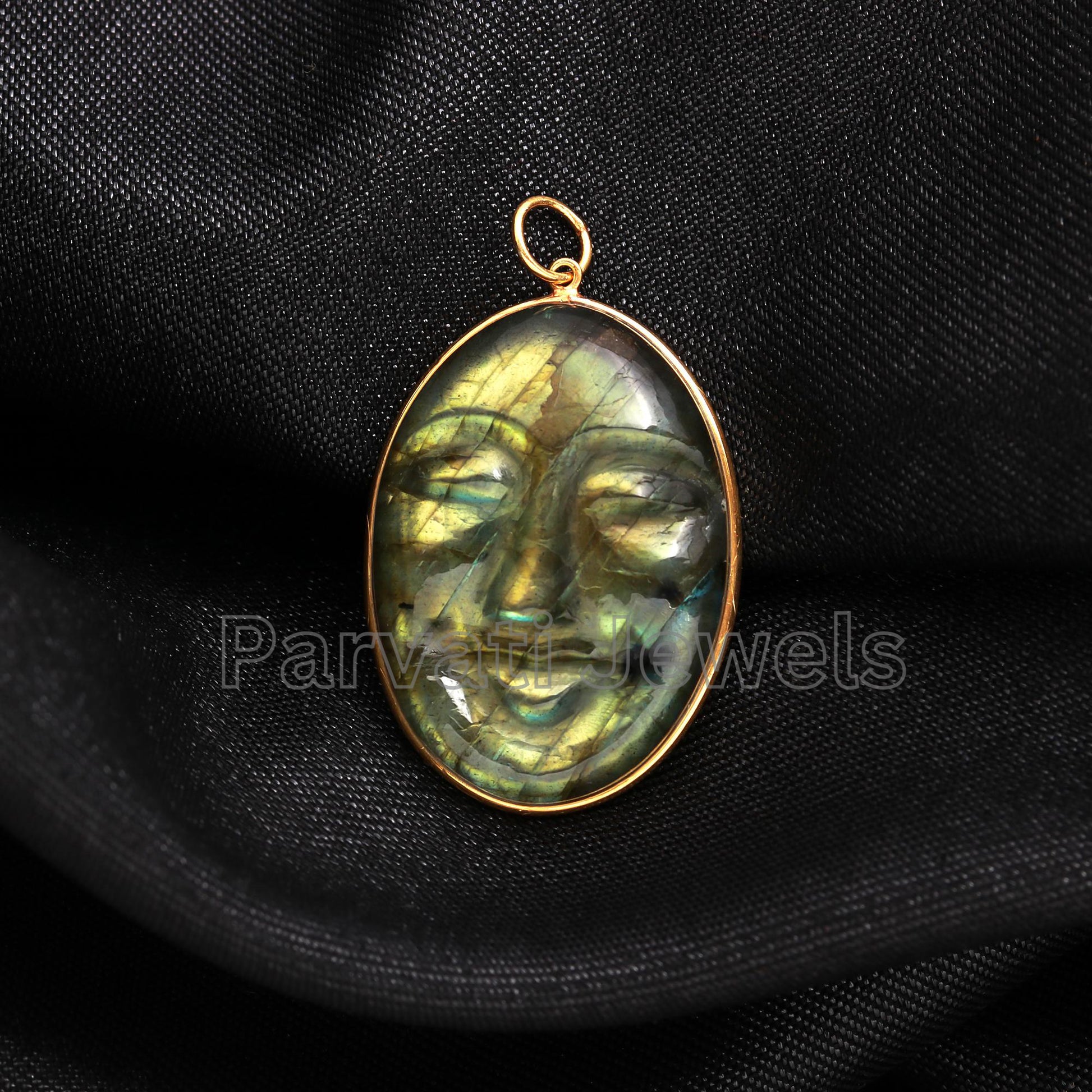Natural Face Carving Labradorite Charm, Labradorite 18k Solid Gold Charm, Labradorite Charm, Gold Charm, Handmade Gold Charm, Gift for her,
