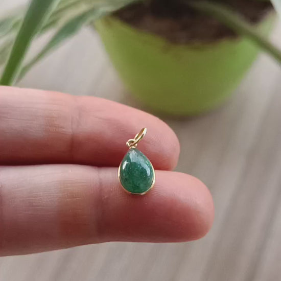 Natural Green Aventurine 18k Solid Gold Charm Pendant, 18k Solid Gold Charm, Green Aventurine Gold Charm, Handmade Gold Charm, Gift For Her Charm
