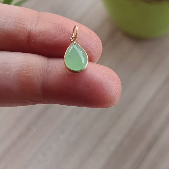 Natural Green Chalcedony Solid Gold 18K Charm, 18k Solid Gold Charm, Tear Drop Shape Chalcedony Gold Charm, Handmade Charm For Gifting