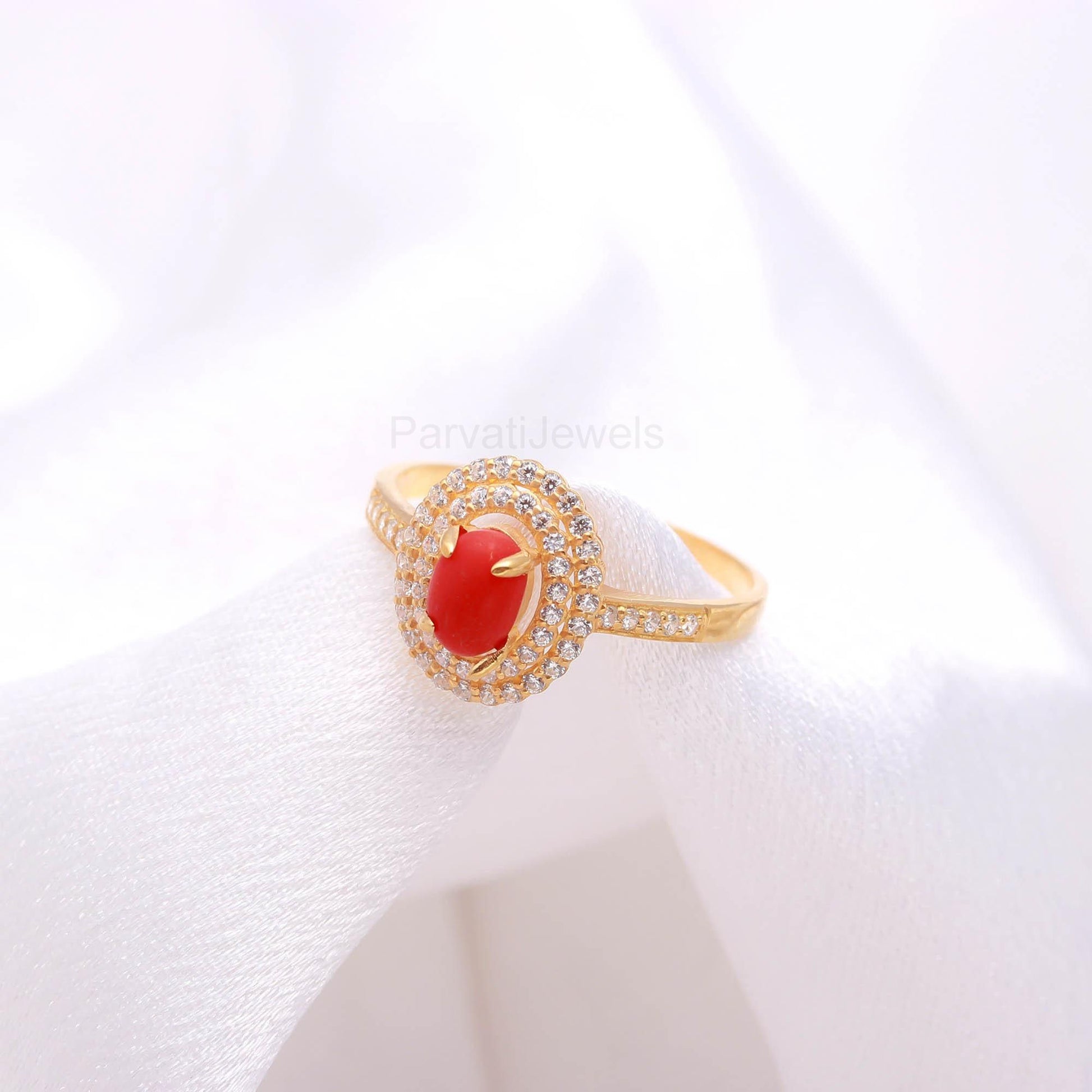 Natural Italian Coral With Diamond Gold Ring, 14K Solid Gold Ring, July Birthstone, Coral Gold Ring, Handcrafted Ring, Dainty Gold Ring,