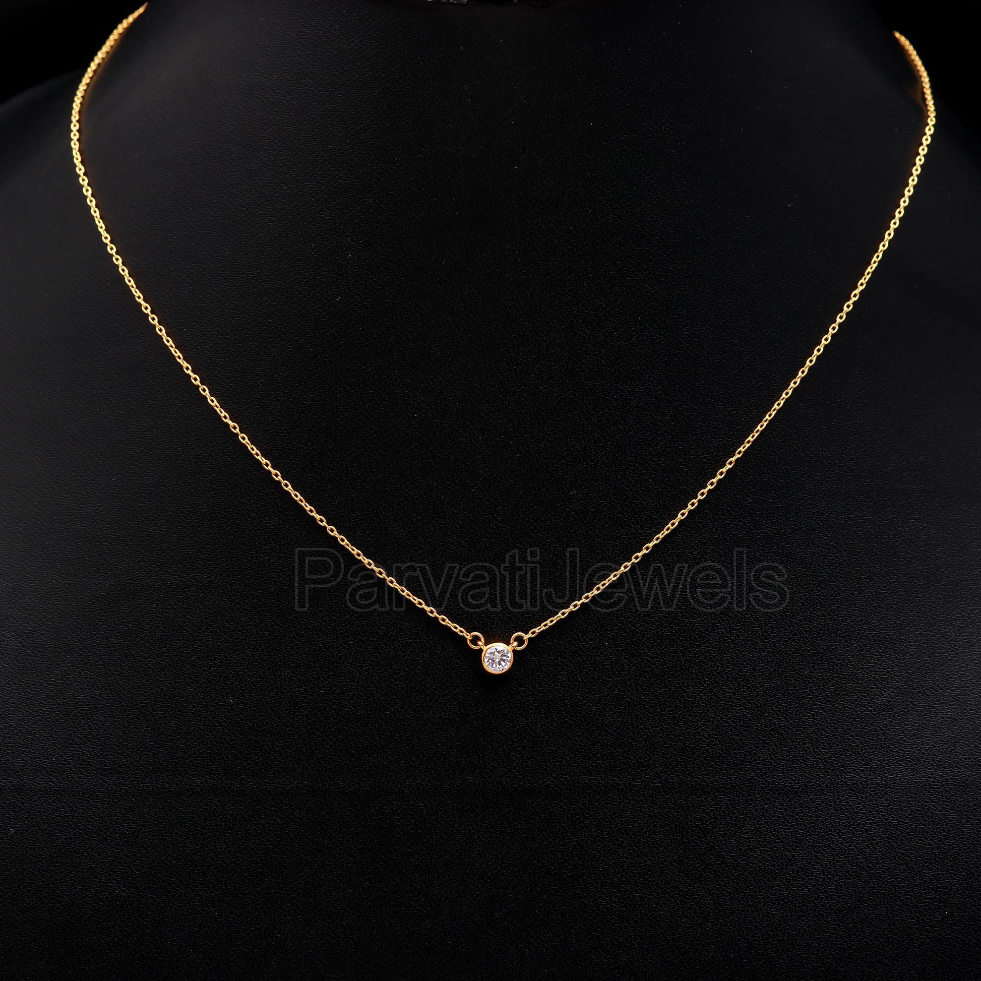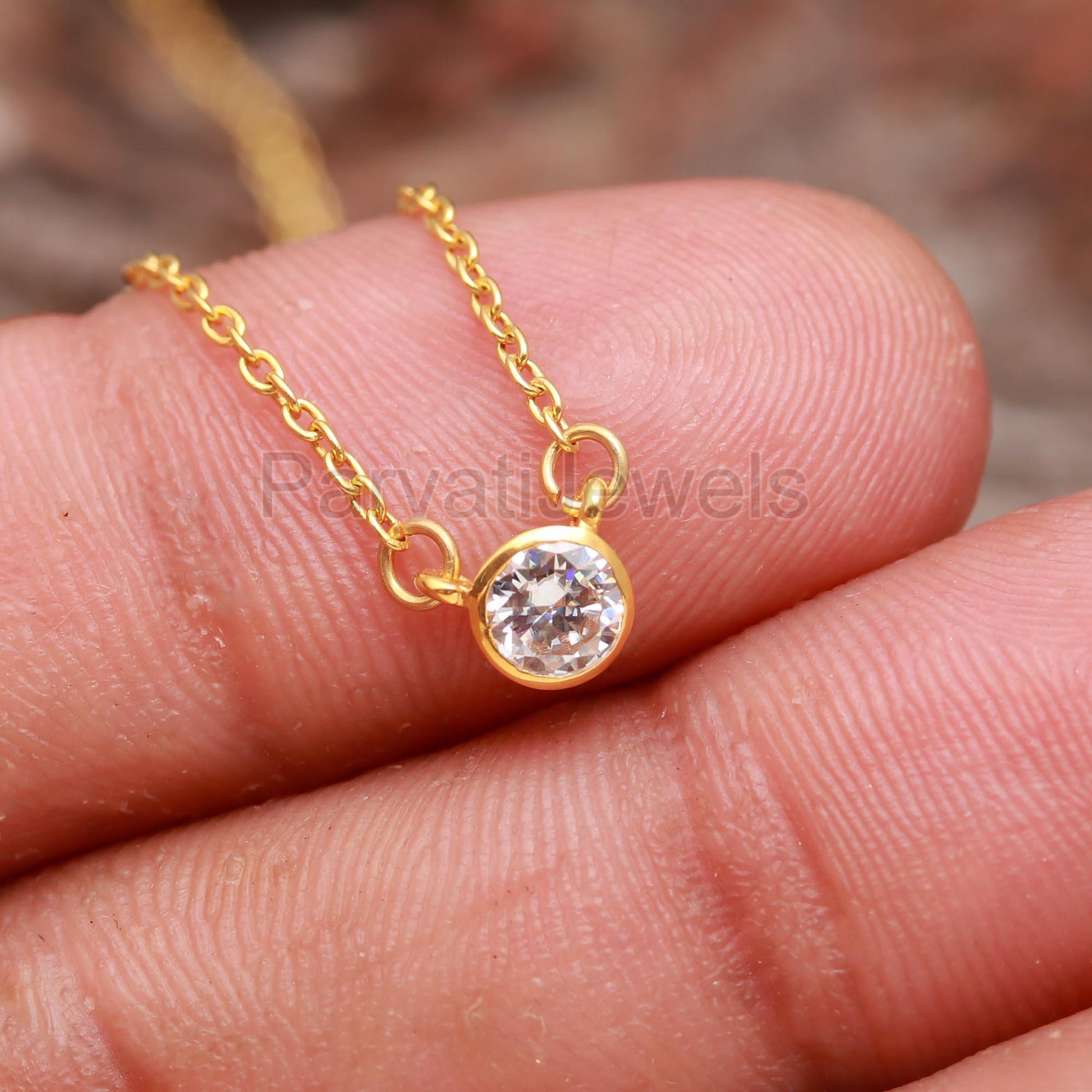 Natural Moissanite Necklace, 18k Solid Gold Necklace, Moissanite Necklace, Handmade Gold Necklace, April Birthstone Necklace, Gold Necklace
