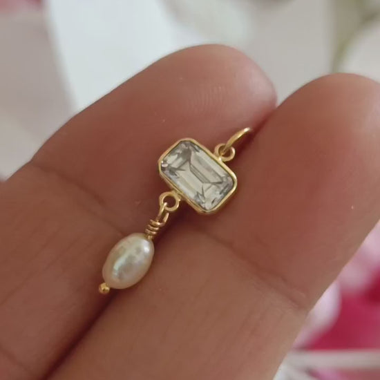 Natural Moissanite Pearl Charm, Solid 18k Gold Charm, Moissanite Charm Pendant, April Birthstone Charm, Handmade Gold Charm, Gift For Her, Gift For Sister Charm, Gift For Mom Charm, Gift For Girlfriend Charm, Gift For Him Charm