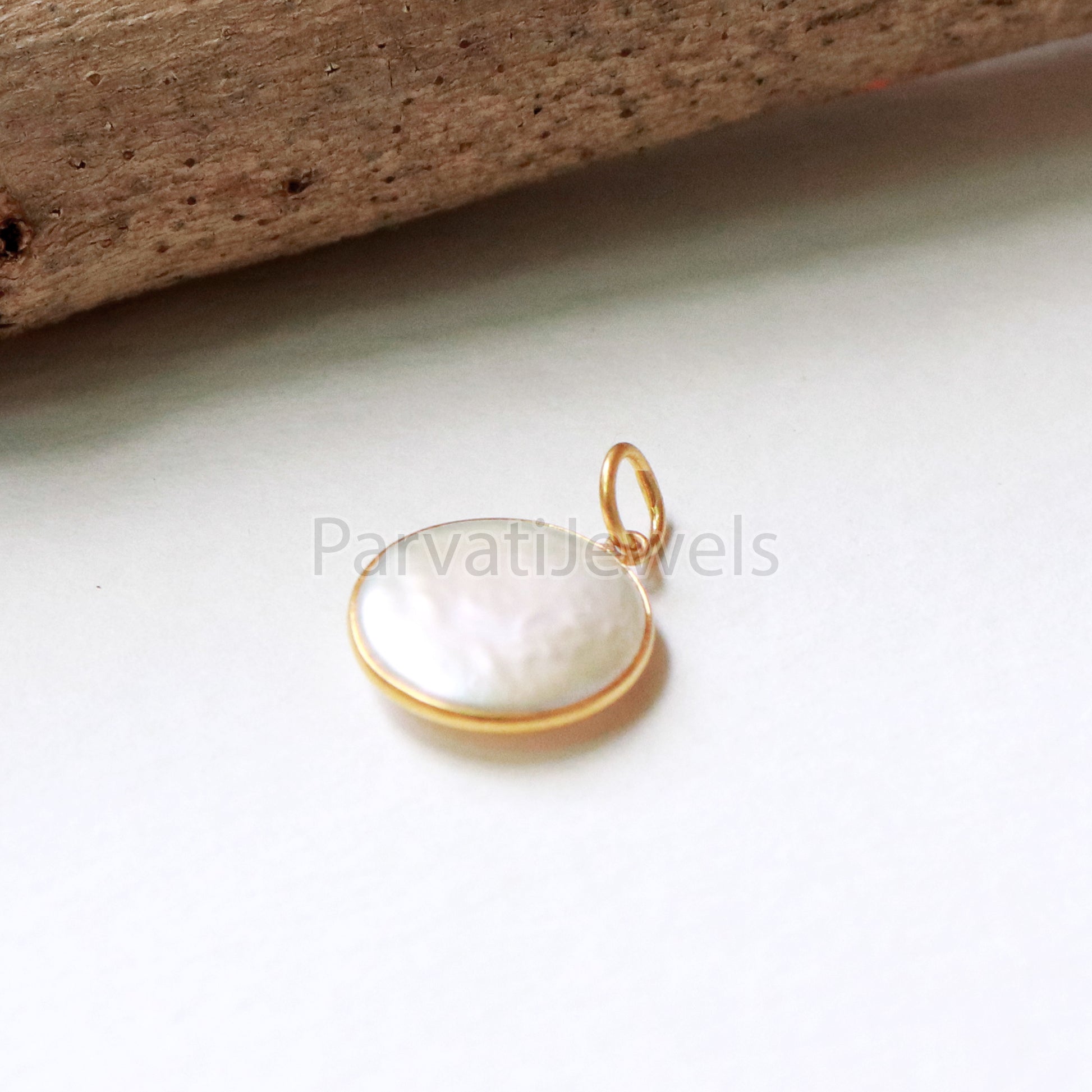 Natural Mother of Pearl Charm, 18k Solid Gold Charm, Mother of Pearl Gold Charm, Charm, Pearl Charm Necklace, Charm Pendant, Handmade Gold Charm